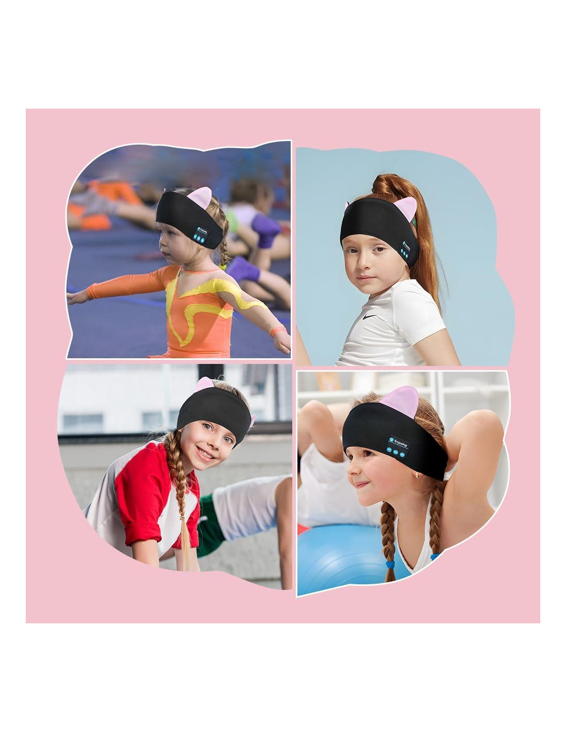 - [Diadema Bluetooth para Niños para Viajes y Escuela] La tela elástica y transpirable puede proteger mejor la piel de su hijo, para que su hijo pueda dormir tranquilamente mientras viaja. A los niños les encantará el adorable diseño de orejas de gato que mantendrá a su hijo feliz en la escuela.