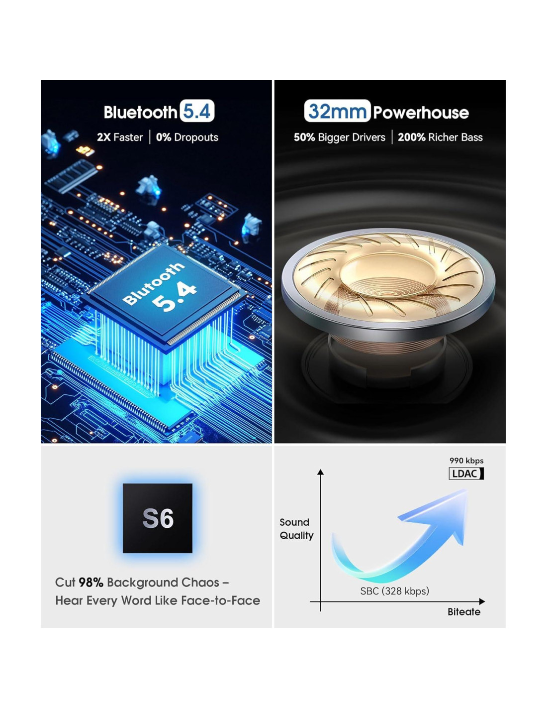 - SONIDO ESTÉREO HD CON BLUETOOTH 5.4: Equipado con la última tecnología Bluetooth 5.4 para una conexión estable y rápida; los controladores compuestos de 40 mm ofrecen graves profundos y agudos claros, asegurando una experiencia de audio inmersiva ya sea que estés en movimiento o en reposo