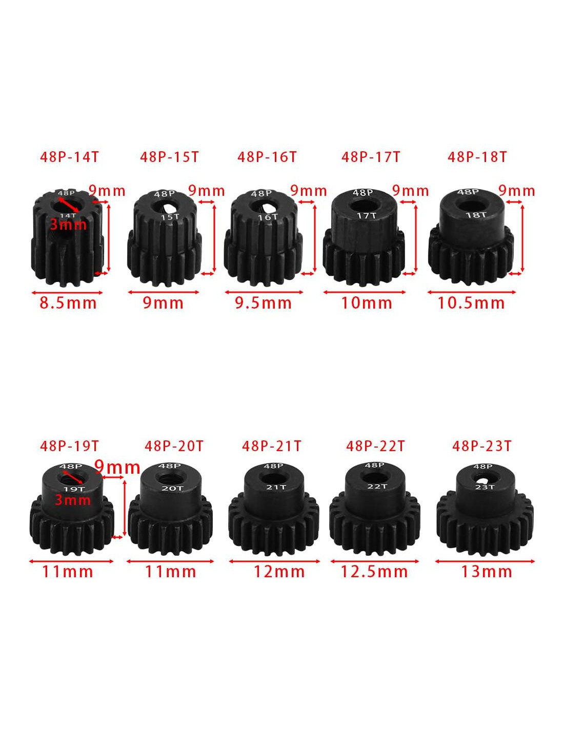Pothyes 48P 3.175mm M0.53 Engranaje de Motor Piñón de Acero Negro 14T 15T 16T 17T 18T 19T 20T 21T 22T 23T para HPI Kyosho Losi Axial Tamiya 1/8 1/10 Coche RC Camión Monster Buggy