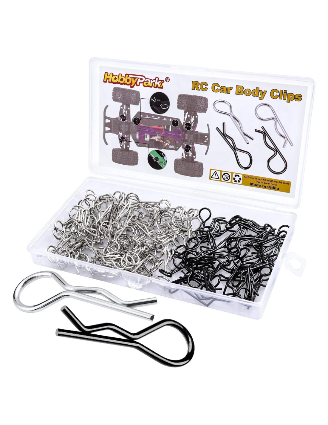 - Gran Valor: 150 piezas de clips de cuerpo RC universales, incluyendo 100 piezas de clips R plateados y 50 piezas de pines de clips R negros, Empacado en Caja Transparente.