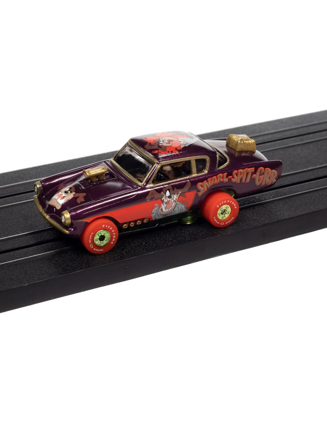 Auto World Thunderjet Lanzamiento 33 Looney Tunes! Los autos slot de Looney Tunes de Auto World están decorados con arte icónico de personajes de Looney Tunes. Chasis ThunderJet Ultra G proporciona toda la potencia que estos pequeños personajes necesitan! Pato Lucas, Cerdito Porky, Speedy Gonzales y Diablo de Tasmania están listos para una carrera loca alrededor de la pista!