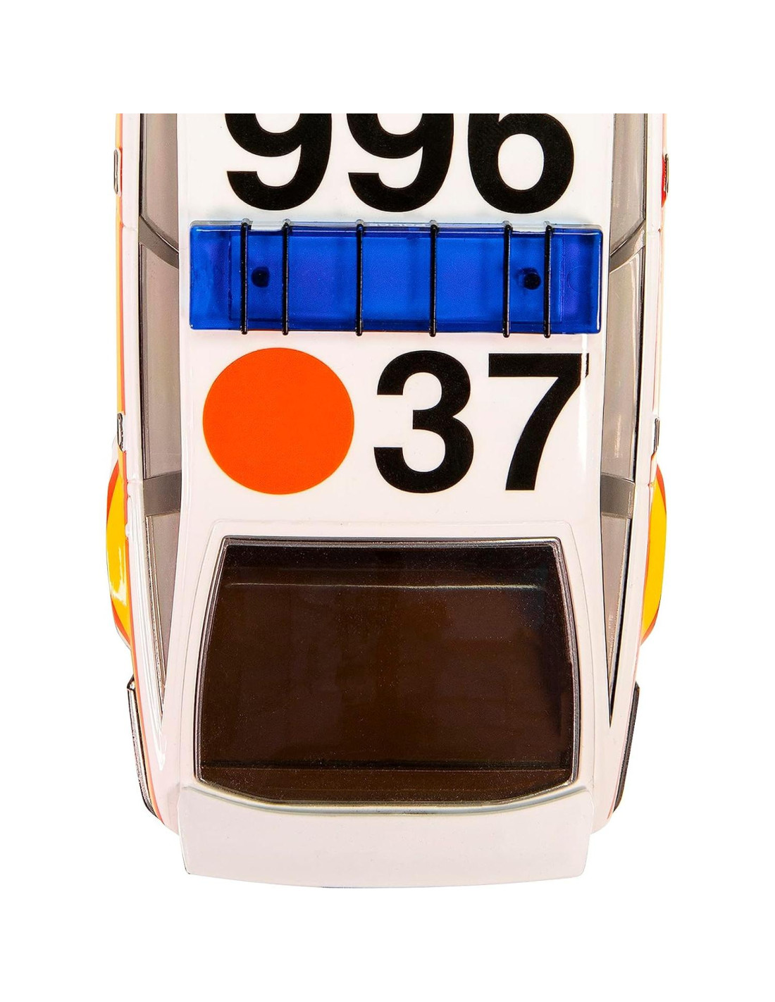 - El coche está altamente detallado con un interior completo y un conductor de coche de carreras. El coche tiene faros con efecto Xenon y luces traseras que funcionan. La luz del techo también parpadea. Sin sirena.
