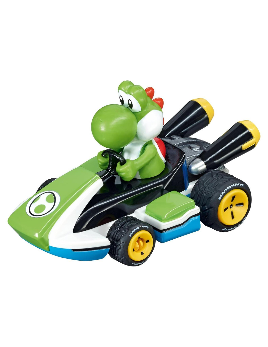 Yoshi en el coche de carreras de Nintendo Mario Kart 8 Carrera Go!!!, Go!!! Plus Licencia Original de Nintendo Escala 1:43 Para 6 años y más Yoshi acelera en la pista de carreras Al lado de su amigo Mario, Yoshi vive grandes aventuras y corre emocionantes carreras contra sus oponentes en el juego Nintendo Mario Kart 8. El pequeño dragón se siente como en casa detrás del volante de su coche y demuestra que tiene lo que se necesita para ser un verdadero piloto de carreras. ¿Es Yoshi también el primero en cruzar la línea de meta en tu pista Carrera? La diversión está garantizada El pequeño dragón llega a tu hogar en un genial coche de carreras verde y está listo para comenzar. Gracias a una licencia original de Nintendo, el coche de slot a escala 1:43 está procesado hasta el más mínimo detalle y equipado con ruedas extra grandes. Con ellas, el coche apenas pierde tracción y también puede dominar curvas difíciles. Una cosa está clara: ¡Juntos pueden superar cada carrera!