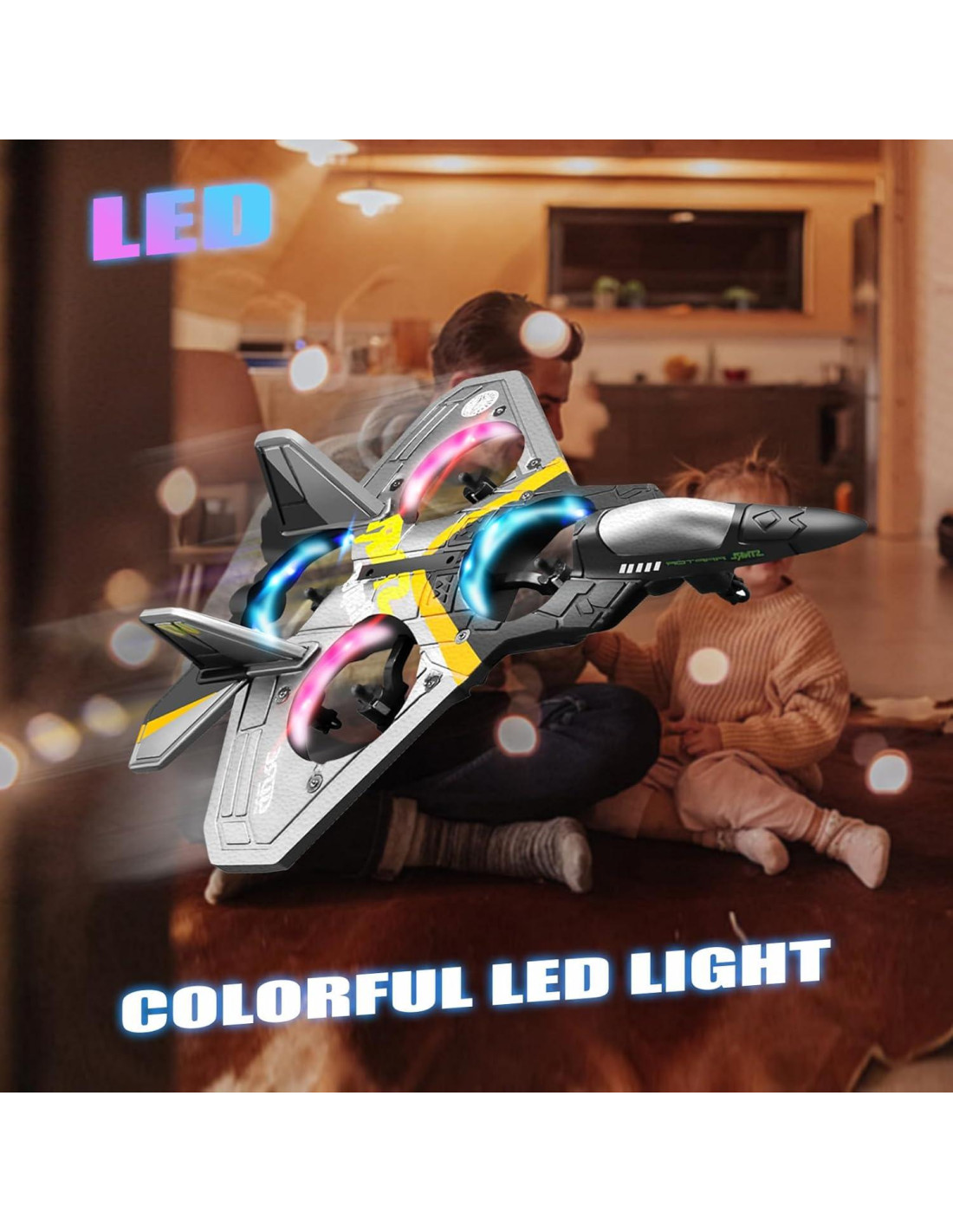 - Simula un Diseño de Caza Real: Este es un juguete de avión de control remoto que simula completamente un diseño de caza real y cumple todos los sueños de los niños de manejar un caza controlado a distancia. Hecho de material de espuma liviana para garantizar durabilidad, la hélice está encerrada por protectores de seguridad para reducir el riesgo de lesiones y proteger el dron de daños. Tiene varias funciones como acrobacias voladoras, detección de gravedad, círculos en el aire, giros en el aire, círculos de 360 grados y despegue rápido, etc.