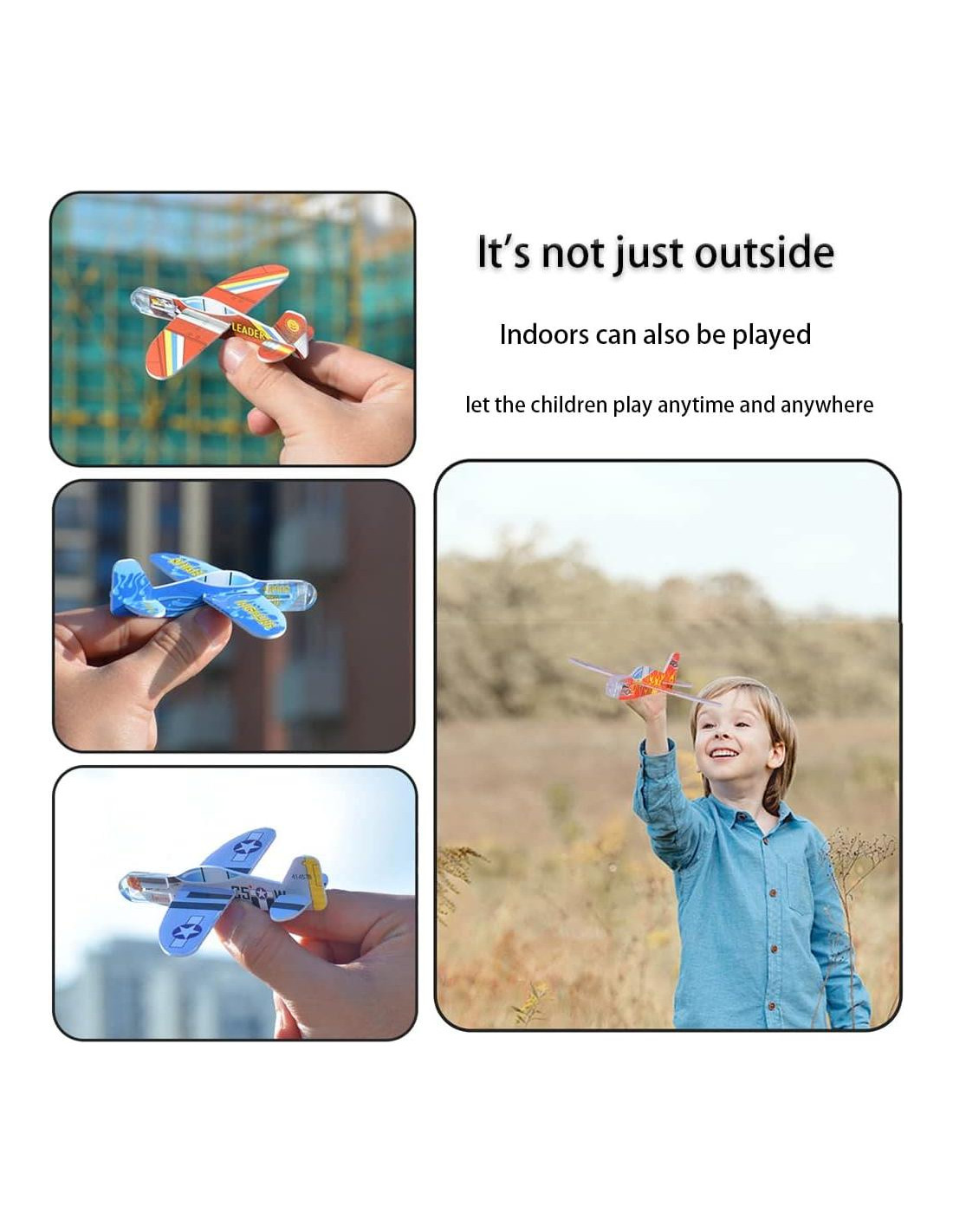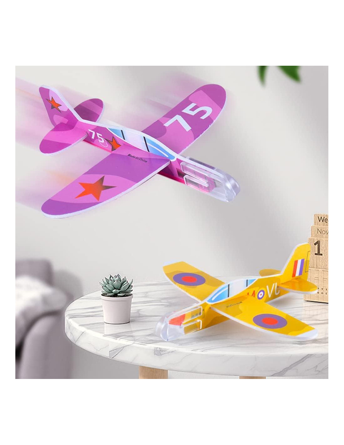 - Durabilidad: Hechos de espuma de alta calidad, estos aviones voladores son ligeros, duraderos y amigables para los niños. A los niños les encantarán estos planeadores en colores llamativos como azul, rojo, naranja y amarillo.