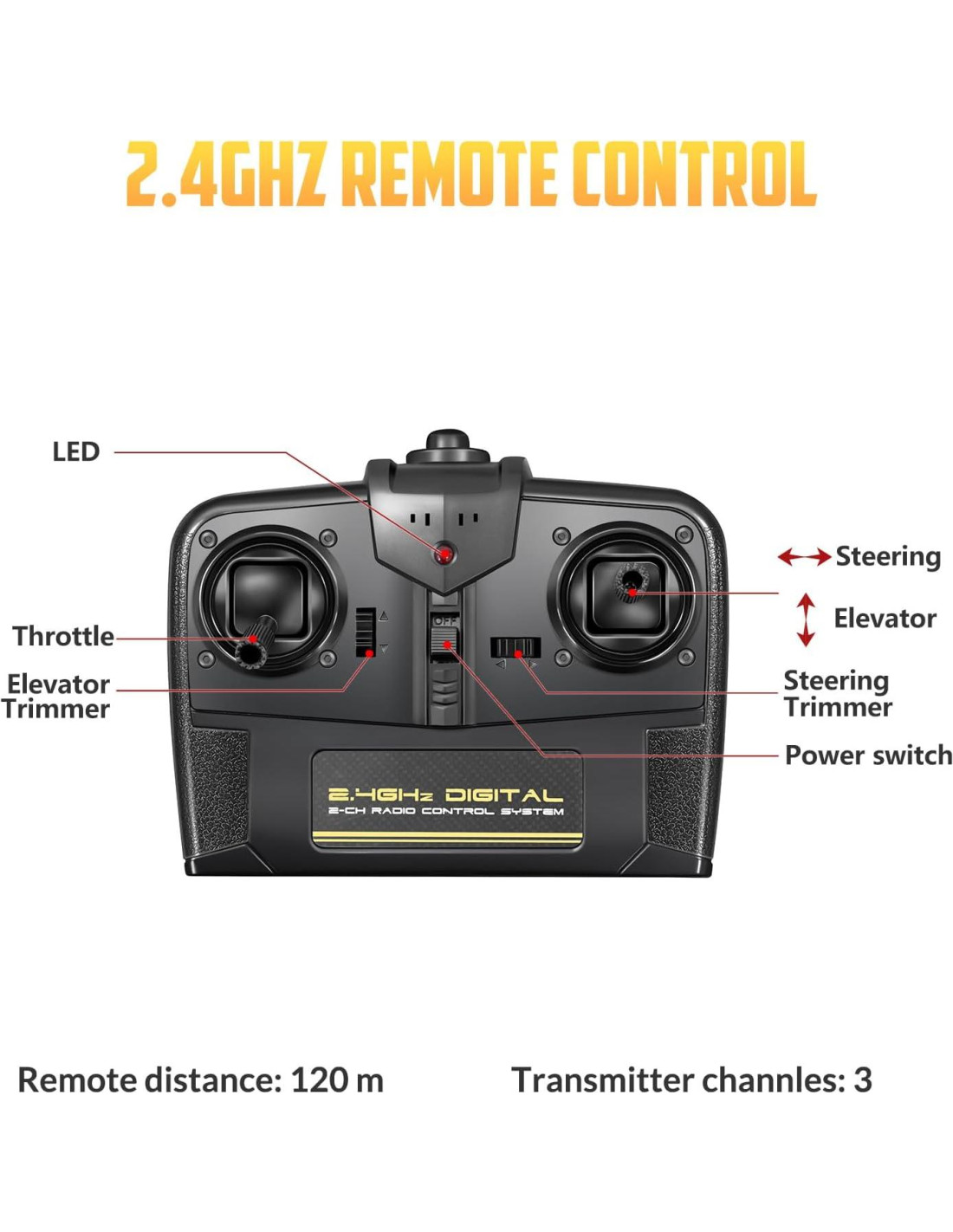 - Construido en sistema de estabilización giroscópica de 6 ejes, este avión RC es fácil de volar. Un principiante aprenderá a volar después de horas de práctica.