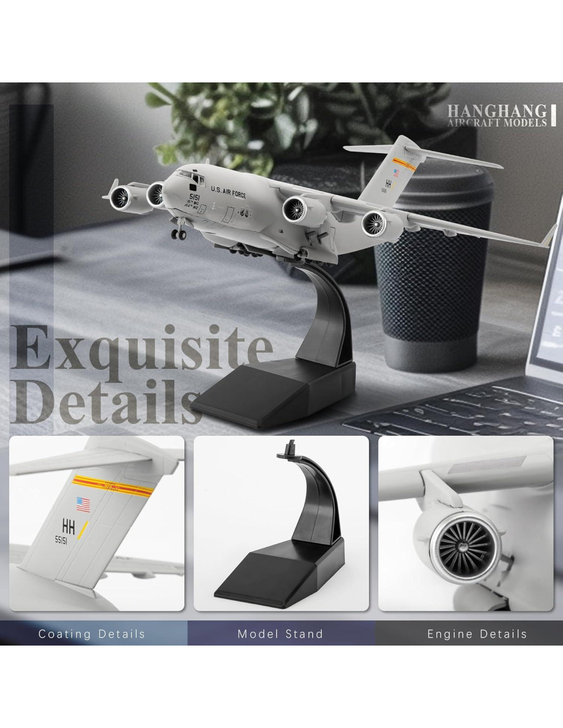 - Tamaño - Modelo de Avión de Transporte Estratégico C-17 Global Overlord de la Fuerza Aérea de EE. UU. a Escala 1:200, el peso total de la máquina es de aproximadamente 520G/pcs, la longitud del cuerpo es de 28cm, el ancho (la distancia entre las puntas de las dos alas) es de 25.4cm.