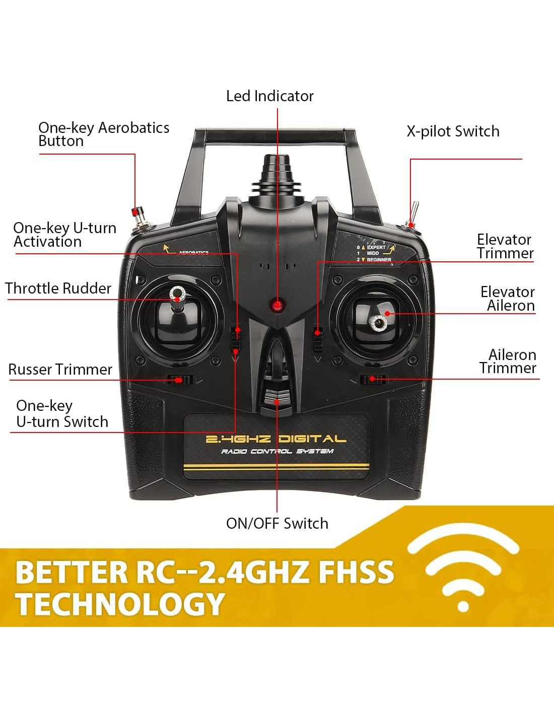 - Perfecto para Principiantes Modo de Asistencia de Control de Vuelo de 3 Niveles ayuda a los principiantes a aprender a volar un avión de control remoto paso a paso. El paquete incluye todo lo necesario para comenzar el modelo, excepto las baterías para el transmisor. Está completamente ensamblado para que el avión planeador despegue rápidamente y el paquete portátil permite llevarlo contigo a todas partes.