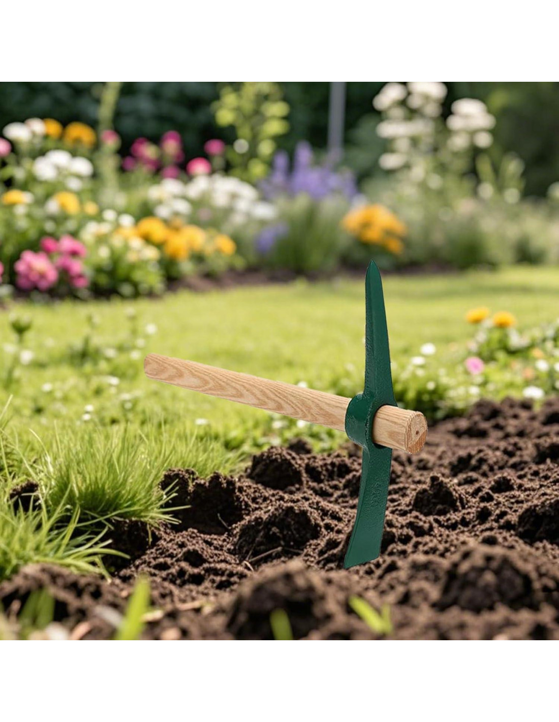 - [ALTA CALIDAD DE ARTESANÍA] Esta azada pico está hecha de acero forjado y mango de madera sólida. La superficie del pico forjado está pintada, tiene buena tenacidad, agudeza y durabilidad. El mango de madera es suave y cómodo, y tiene las ventajas de alta resistencia, durabilidad y largo tiempo de uso.