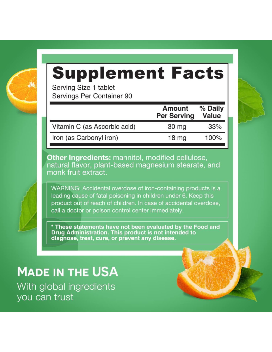 - Dulce Sin Azúcar - Disfruta de un refrescante sabor a naranja picante creado por ingredientes de origen vegetal. Estos suplementos de hierro para hombres y mujeres están formulados sin el uso de sabores o colorantes artificiales. Sin azúcar, sin ingredientes ocultos, sin tonterías