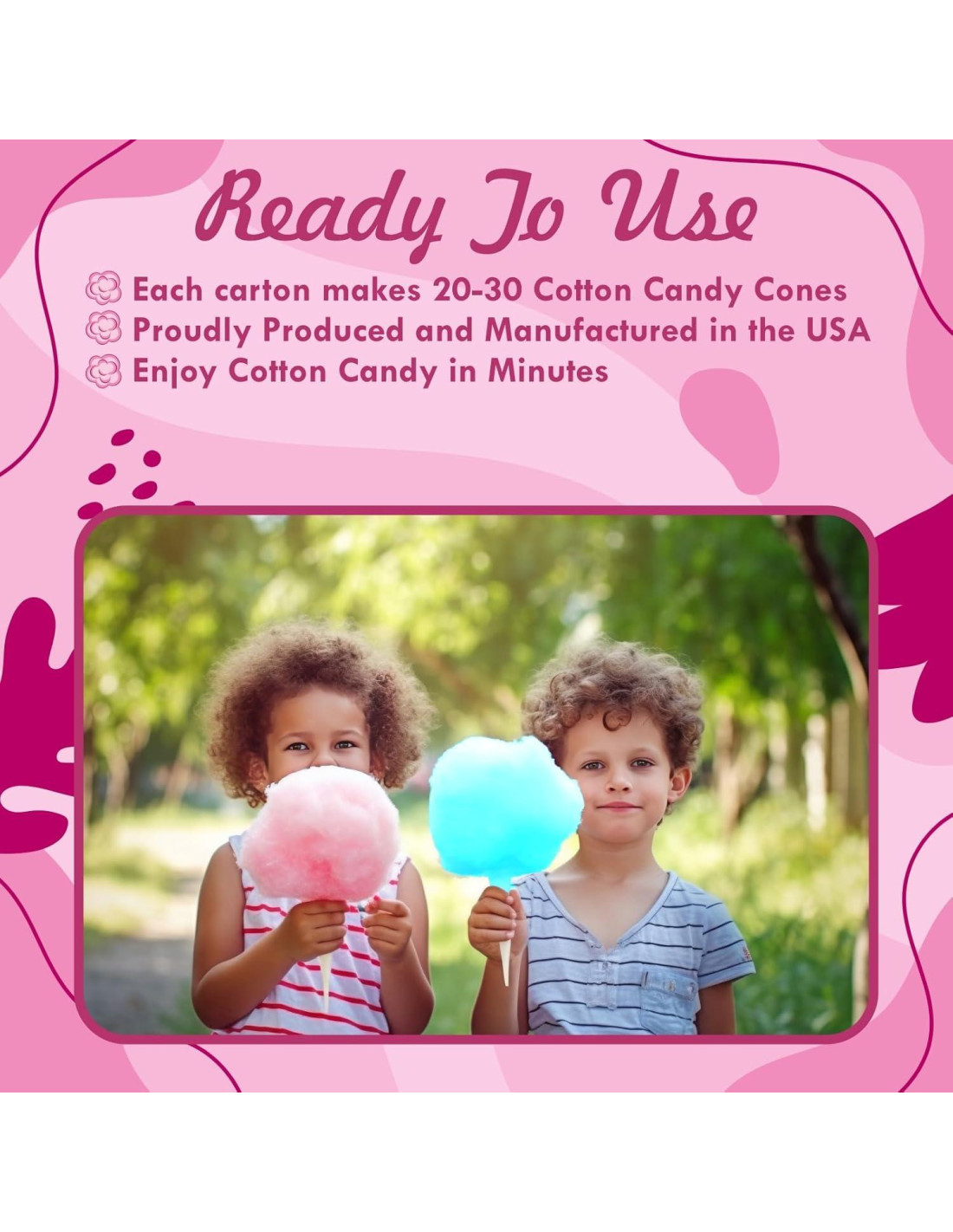 - Diseñado para entornos de feria, este paquete de azúcar para algodón de azúcar está hecho para un uso sin esfuerzo y un máximo disfrute. Su empaque conveniente y su generoso tamaño de 2 libras (0.91 kg) lo hacen ideal para atender a grandes multitudes, mientras que los colores vibrantes y los sabores irresistibles añaden un elemento extra de diversión y emoción a cualquier evento.