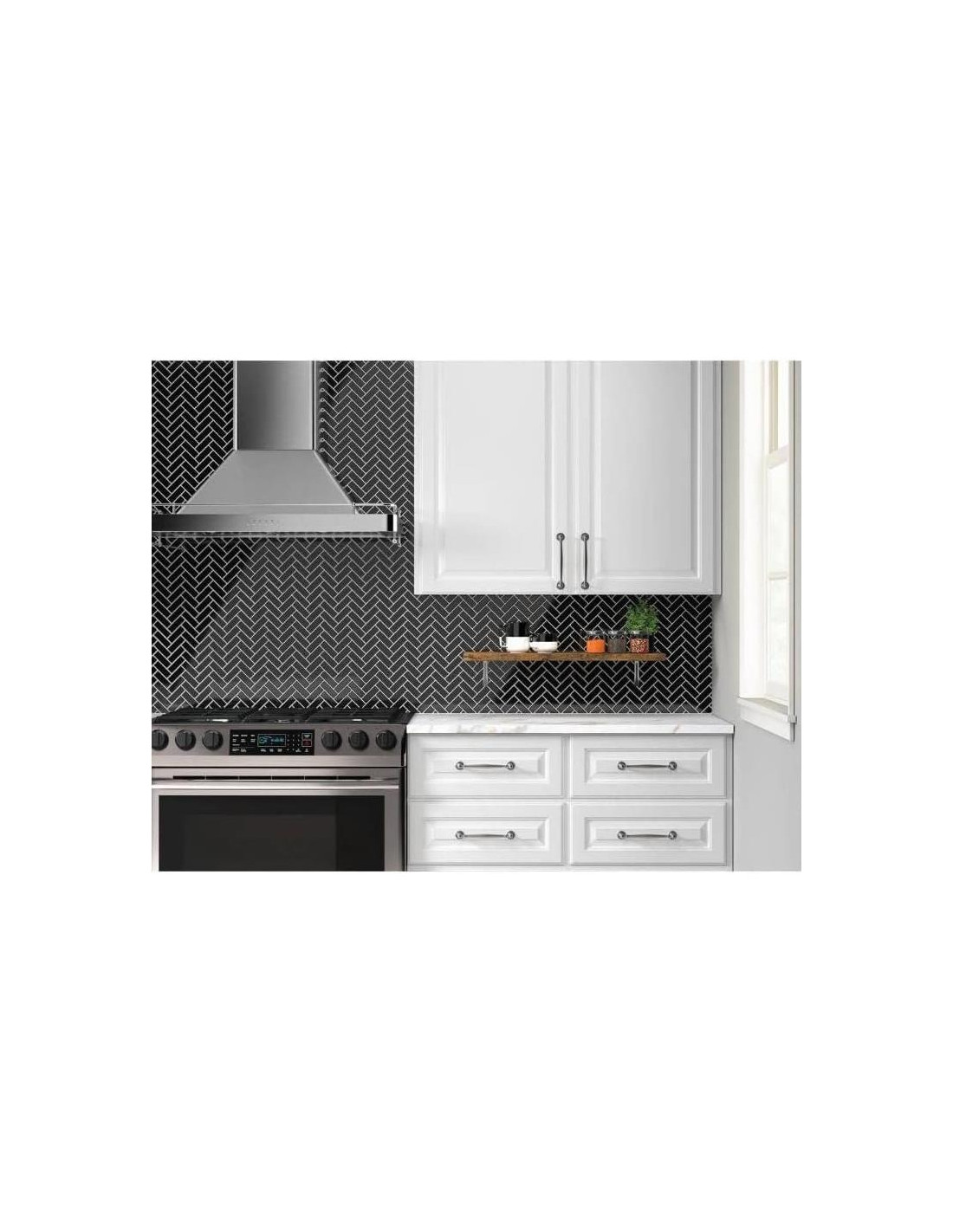Aporta sofisticación moderna a tu espacio con el Mosaico de Porcelana Negra Tenedos en Patrón de Espiga. Fabricado con porcelana de primera calidad con un acabado mate elegante, este mosaico presenta el atemporal patrón de espiga, una disposición en zigzag de azulejos rectangulares que añade profundidad, movimiento visual y estilo a cualquier diseño. Midiendo 31.5 cm x 27.4 cm por hoja con un grosor de 0.6 cm, cada azulejo está montado en malla para una fácil instalación con pegamento, asegurando una alineación precisa y líneas de lechada sin costuras. El audaz color negro crea un contraste impactante que complementa tanto interiores contemporáneos como tradicionales, ofreciendo versatilidad y elegancia. Los acabados mate proporcionan una superficie refinada y no reflectante que reduce el deslumbramiento mientras añade una sofisticación sutil y una atmósfera moderna. Vendido por caja de 10 hojas, cubriendo 0.9 m, estos azulejos son ideales para una amplia gama de aplicaciones, incluyendo salpicaderos de cocina, paredes de baño, rodeos de ducha, frentes de chimenea, lavanderías, entradas y hasta áreas exteriores cubiertas seleccionadas. Duradero, resistente al agua y de bajo mantenimiento, este azulejo de espiga de porcelana negra ofrece un rendimiento duradero con un diseño audaz y elegante.