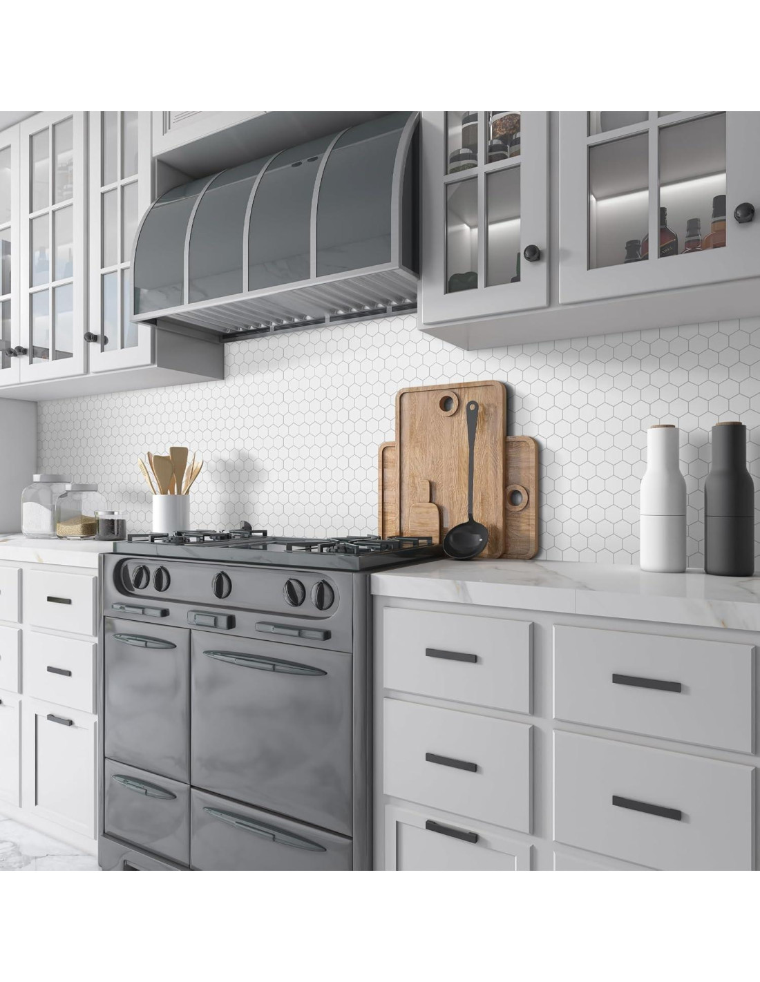 Nuestro Azulejo Hexagonal Blanco de 5.1 cm Pulido Autoadhesivo hace una declaración lujosa y elegante donde sea que se coloque. Hecho de Compuesto de Piedra, este azulejo hexagonal seguramente elevará su diseño interior y exterior, no solo dándole un aspecto actualizado, sino también creando una apariencia visual continua. Se adapta bellamente a esquemas interiores minimalistas modernos, encuentra su lugar en cocinas tradicionales y puede ser una característica que complete configuraciones contemporáneas. Mida el patrón y luego marque en la pared o superficie de los azulejos. Corte el azulejo con un cuchillo utilitario y sepárelo manualmente o con alicates. Retire la parte posterior autoadhesiva del azulejo y colóquelo en la ubicación deseada en la pared o superficie. Cuando todos los azulejos estén en su lugar, presione firmemente para asegurar que las hojas de azulejos de mosaico tengan un fuerte vínculo con la pared o superficie. Para un corte preciso, se requiere una sierra de calar / sierra de corte o cualquiera de las herramientas de corte mecánicas. ¿Necesita lechada para la cocina? No necesita lechada, solo pelar y pegar. ¿Qué herramienta cortará mejor estos azulejos? Corte bordes rectos: Puede usar un cuchillo utilitario para crear una grieta en la superficie del azulejo y luego romperlo siguiendo la grieta. Corte a través de los azulejos: Use Dremel, sierra de corte, sierra de calar o herramientas rotativas. ¿Puedo poner esto sobre un salpicadero de cocina existente? Sí, puede usarlo en el salpicadero existente, asegúrese de que la superficie esté limpia y nivelada. ¿Son fáciles de quitar? No, no son fáciles de quitar. La cinta adhesiva de doble cara es extremadamente adherente. Puede calentar los azulejos con un secador de pelo y luego usar un cincel o raspador de azulejos para quitarlos. ¿Funcionará y durará en la pared de la ducha? Nuestro azulejo de salpicadero autoadhesivo se puede usar en la pared de la ducha, pero verifique que la pared esté limpia y suave.