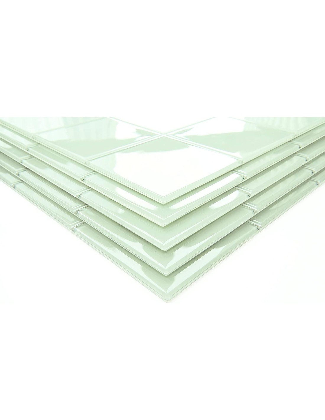 - Paquete de 5 hojas de azulejos de vidrio verde, cubriendo un total de 0.46 metros cuadrados, tamaño de hoja 30.48 cm L x 30.48 cm W, grosor 4 mm.