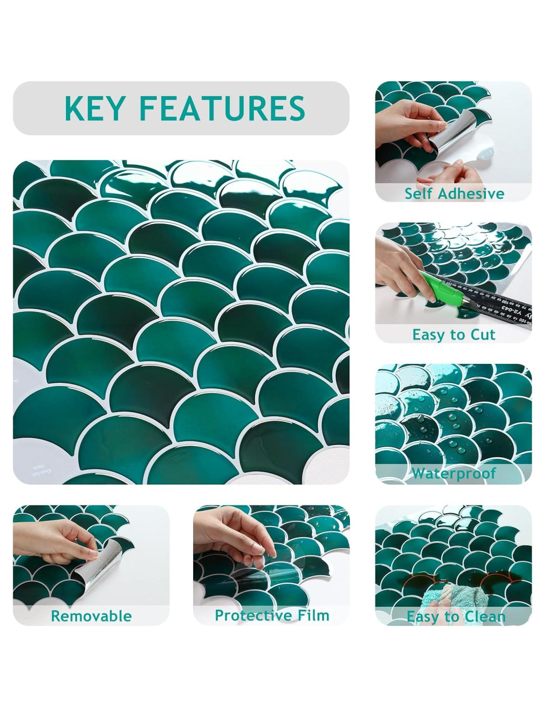- Nuestra azulejo de respaldo autoadhesivo está hecha de vinilo premium, ecológico, flexible, ligero, fuerte adhesión, 30.48cm x 30.48cm x 0.127cm, 6 azulejos cubren 0.56 m por caja, diseño de escama de pescado de mármol verde