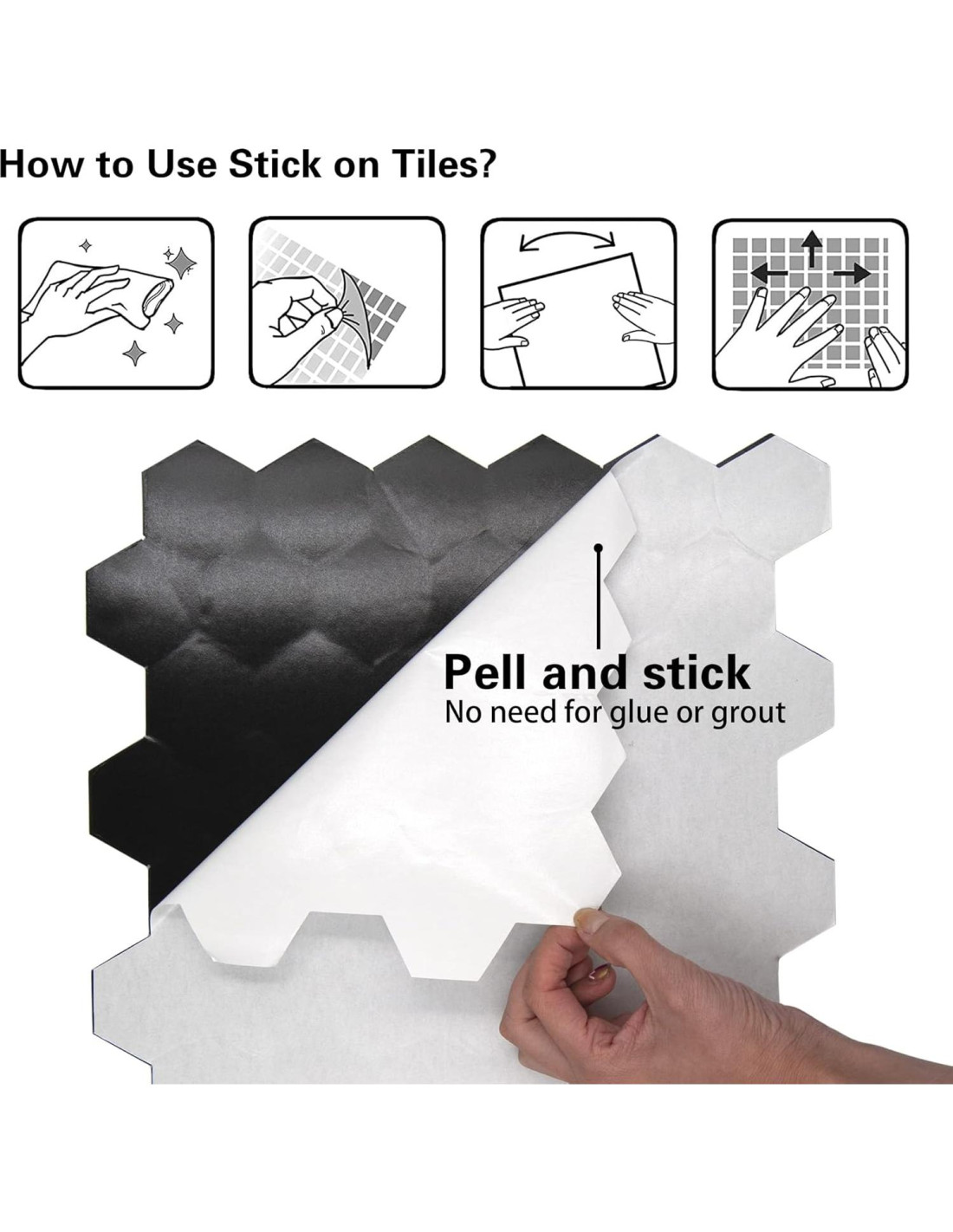 - [Azulejo Hexagonal para Backsplash] : La superficie del azulejo tiene un buen brillo, es resistente al agua y al aceite, y puede soportar altas temperaturas y humedad. El efecto de patrón 3D único hace que tu habitación luzca lo más clásica posible
