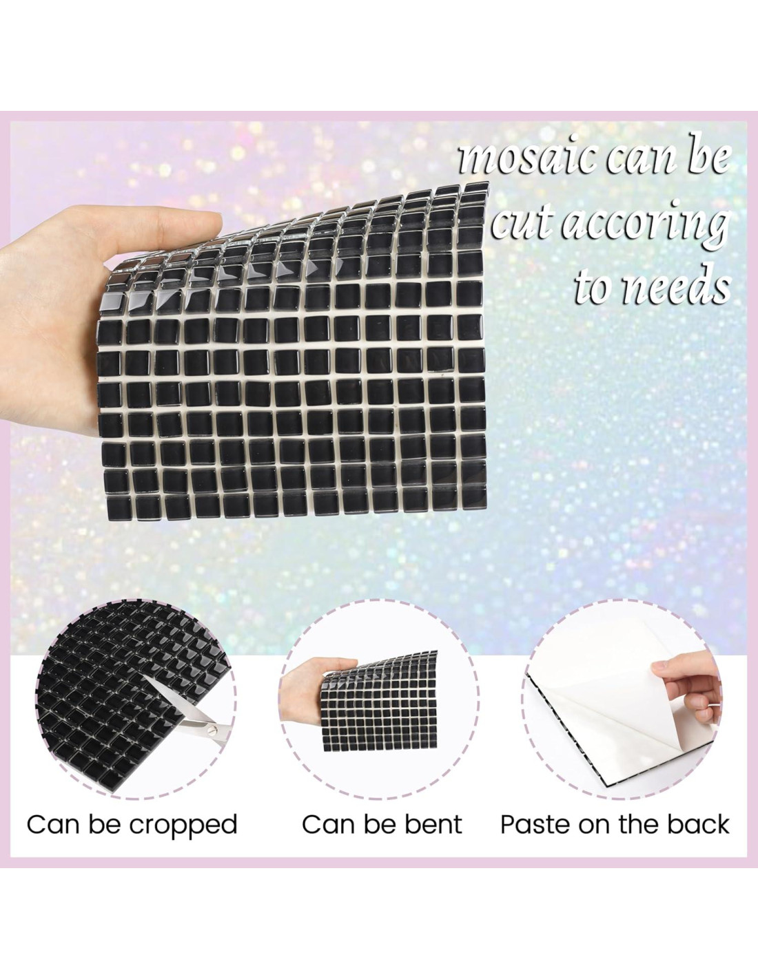 - Característica: mosaicos con brillo, la superficie es suave, no lastimará tus manos, grosor uniforme, más brillantes y hermosos a una distancia más cercana; El color de estos mosaicos nunca se perderá.