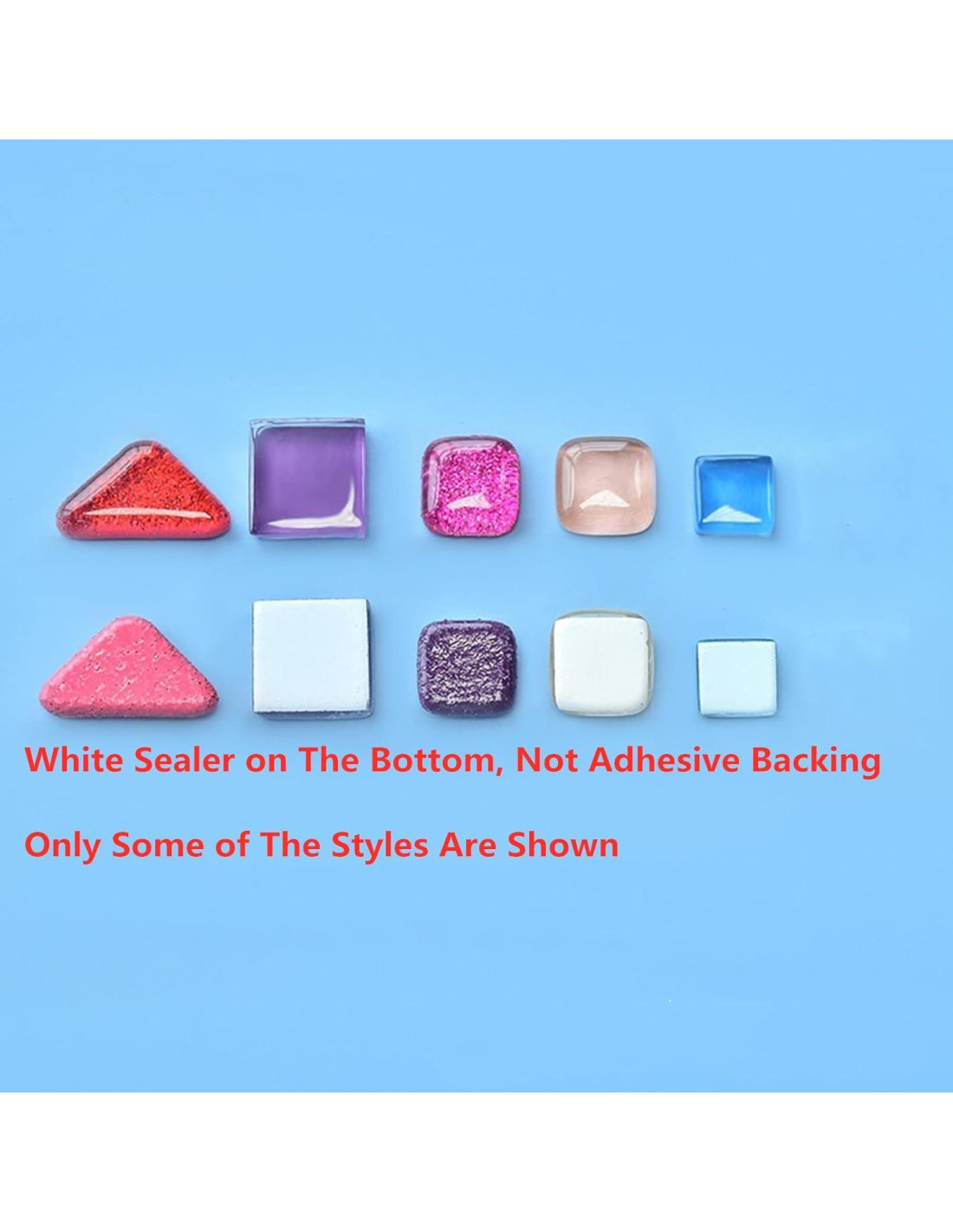 Azulejos de mosaico de cristal brillante en varias formas, triángulo, cuadrado, círculo, irregular. Tamaño cuadrado 1 x 1 cm y 1.5 x 1.5 cm; Tamaño rectangular: 1 x 1.3 cm; Grosor: Aproximadamente 0.4 cm