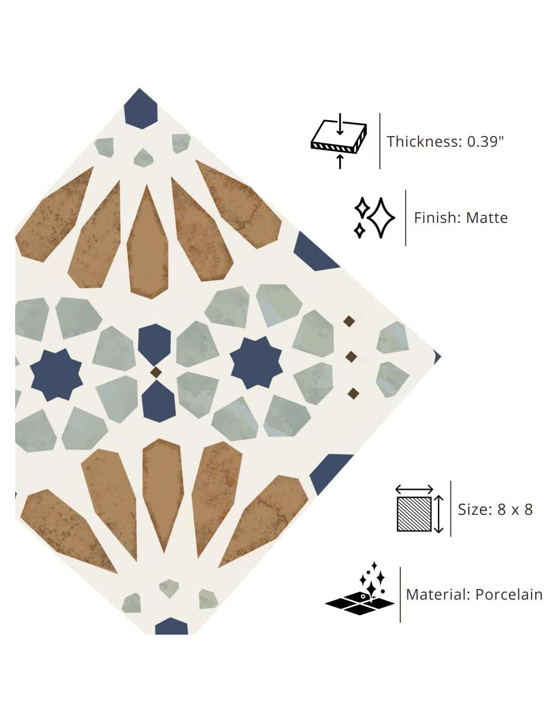 Agrega carácter y encanto a tu espacio con el azulejo de porcelana Tenedos HTC325 Flora Essence Deco, que presenta un diseño geométrico atemporal de 20cm x 20cm en una rica paleta de colores múltiples. Este azulejo combina la elegancia inspirada en lo vintage con un acabado mate moderno, lo que lo convierte en la solución decorativa perfecta tanto para interiores tradicionales como contemporáneos. Fabricado con porcelana de alta calidad, es impermeable, resistente a manchas y diseñado para soportar el desgaste diario, lo que lo hace ideal para suelos, paredes y áreas húmedas como baños, cocinas y duchas. Con una superficie antideslizante (DCOF > 0.42), proporciona mayor seguridad en entornos propensos a la humedad. Este azulejo no solo es adecuado para aplicaciones interiores como salpicaderos, entradas y chimeneas, sino que también se desempeña maravillosamente en entornos exteriores como patios y áreas de piscina. También es compatible con sistemas de calefacción radiante, lo que lo convierte en una opción acogedora y elegante durante todo el año. Fácil de limpiar y de bajo mantenimiento, es perfecto para cualquier espacio de alto tráfico.