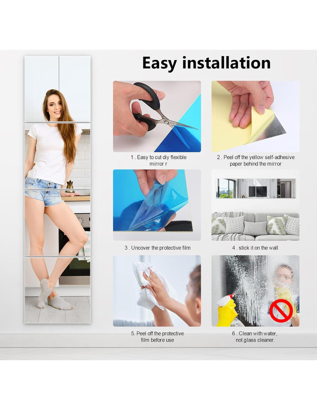 - Flexibles y Autoadhesivos: 12 piezas de azulejos de espejo cuadrados de 30.48*30.48 cm, fabricados con acrílico de alta calidad, estas hojas de espejo son flexibles y cuentan con un respaldo autoadhesivo para una fácil instalación en cualquier superficie lisa.