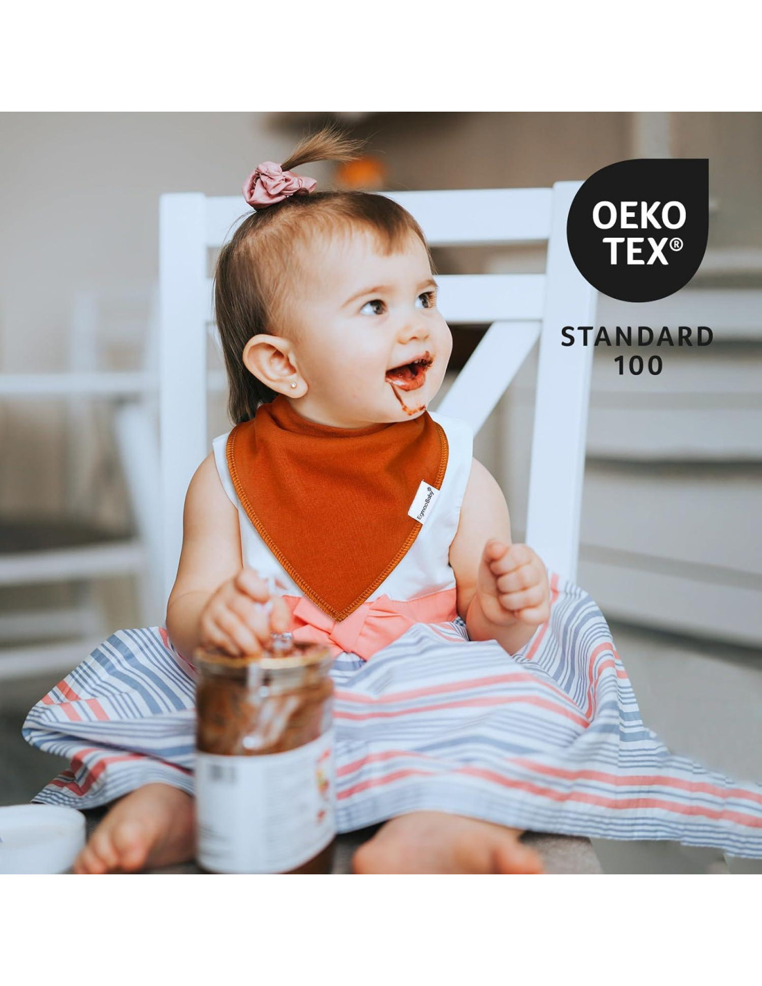- Características adicionales del producto: Algodón orgánico, tamaños ajustables, set de 12 baberos