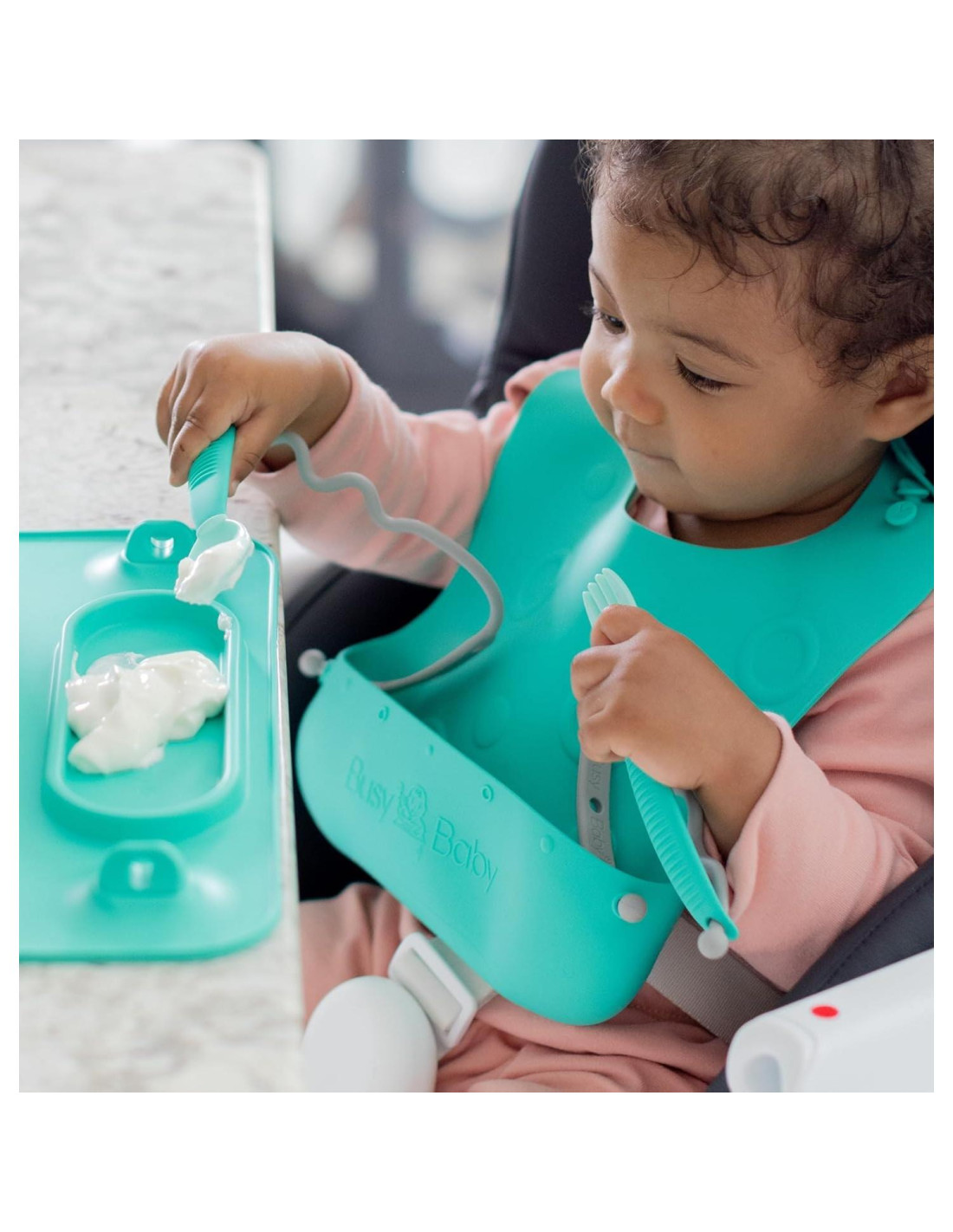 - DISEÑO INNOVADOR: El babero Busy Baby Bungee cuenta con correas ajustables que pueden sostener tanto utensilios como juguetes, manteniéndolos al alcance y fuera del suelo. Cierre de cuello ajustable y un bolsillo amplio y profundo que atrapa cualquier derrame o migajas, haciendo que la hora de comer sea libre de desorden.