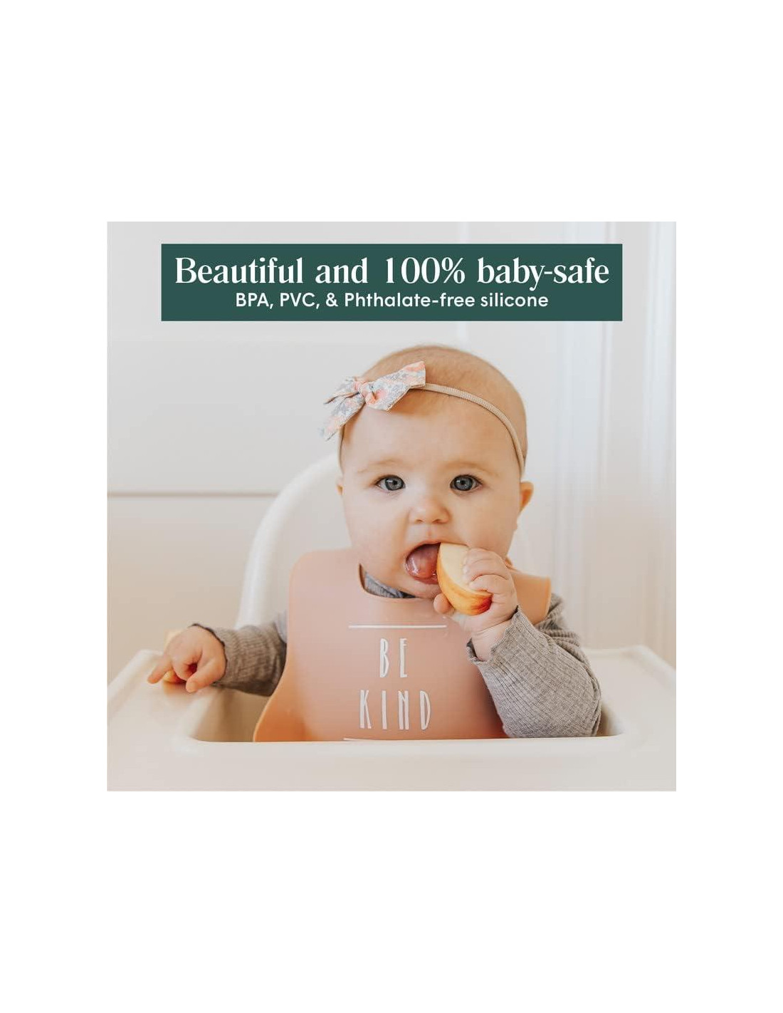 - Material Seguro para Bebés: Hecho de silicona 100% de grado alimenticio, el material suave como la mantequilla de este babero para bebés es cómodo, ligero y seguro. Nuestros suministros de alimentación para niños son libres de BPA, PVC y ftalatos para tu tranquilidad.