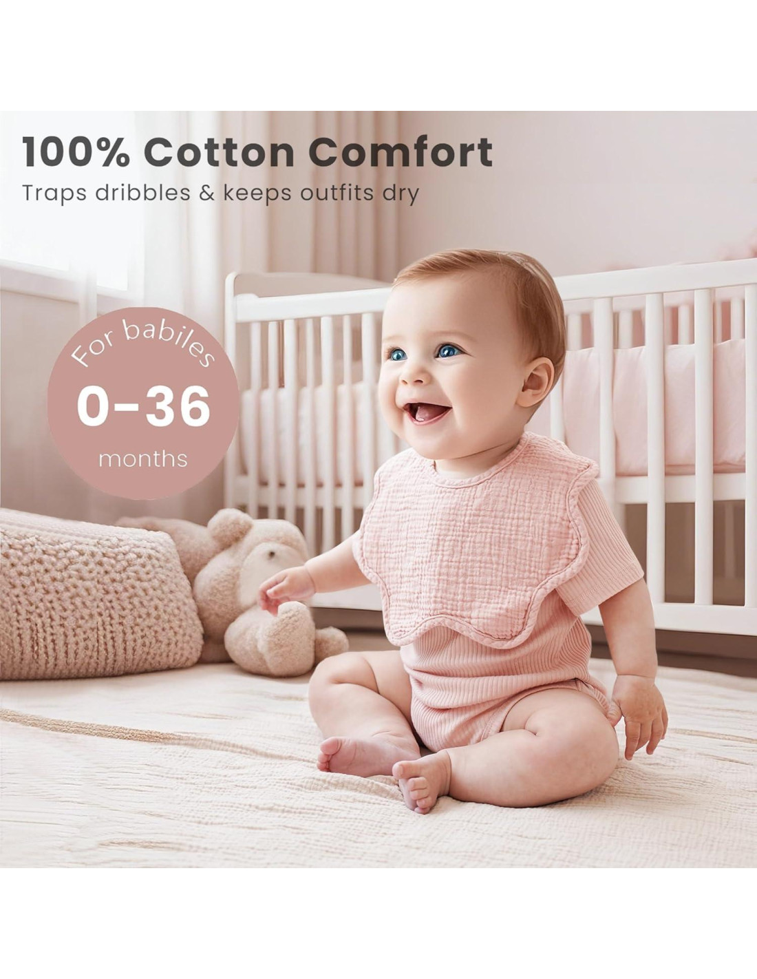 - Suave y Absorbente: Hechos de 100% pura muselina de algodón, estos baberos son ultra suaves. Perfectos para recién nacidos o bebés propensos a regurgitar, estos baberos para la salivación son ideales para bebés en dentición.