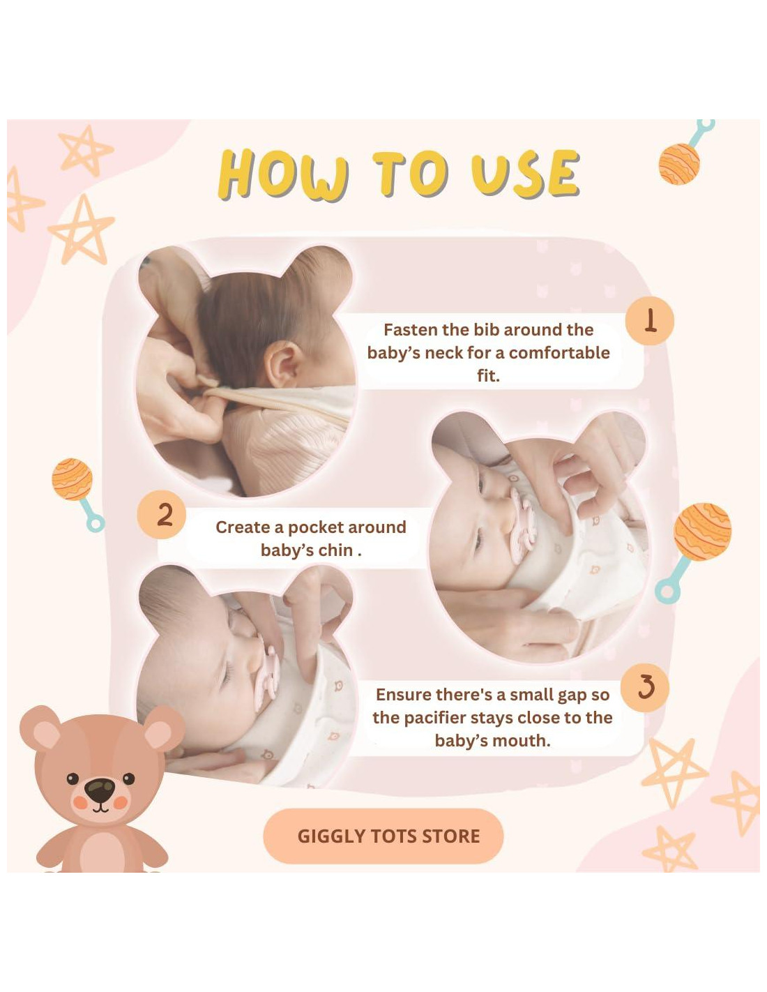 - Diseñado para Bebés entre 0-6 meses que tienen problemas para mantener un Chupete en la boca. Perfecto para Recién Nacidos que están aprendiendo a usar Chupetes. Puede usarse en varios Equipos para Bebés como Columpios, Asientos de Auto y Carritos, haciéndolo práctico para los padres. Gran Idea de Regalo para Baby Shower. El Babero Giggly Tots no es un aid para dormir.