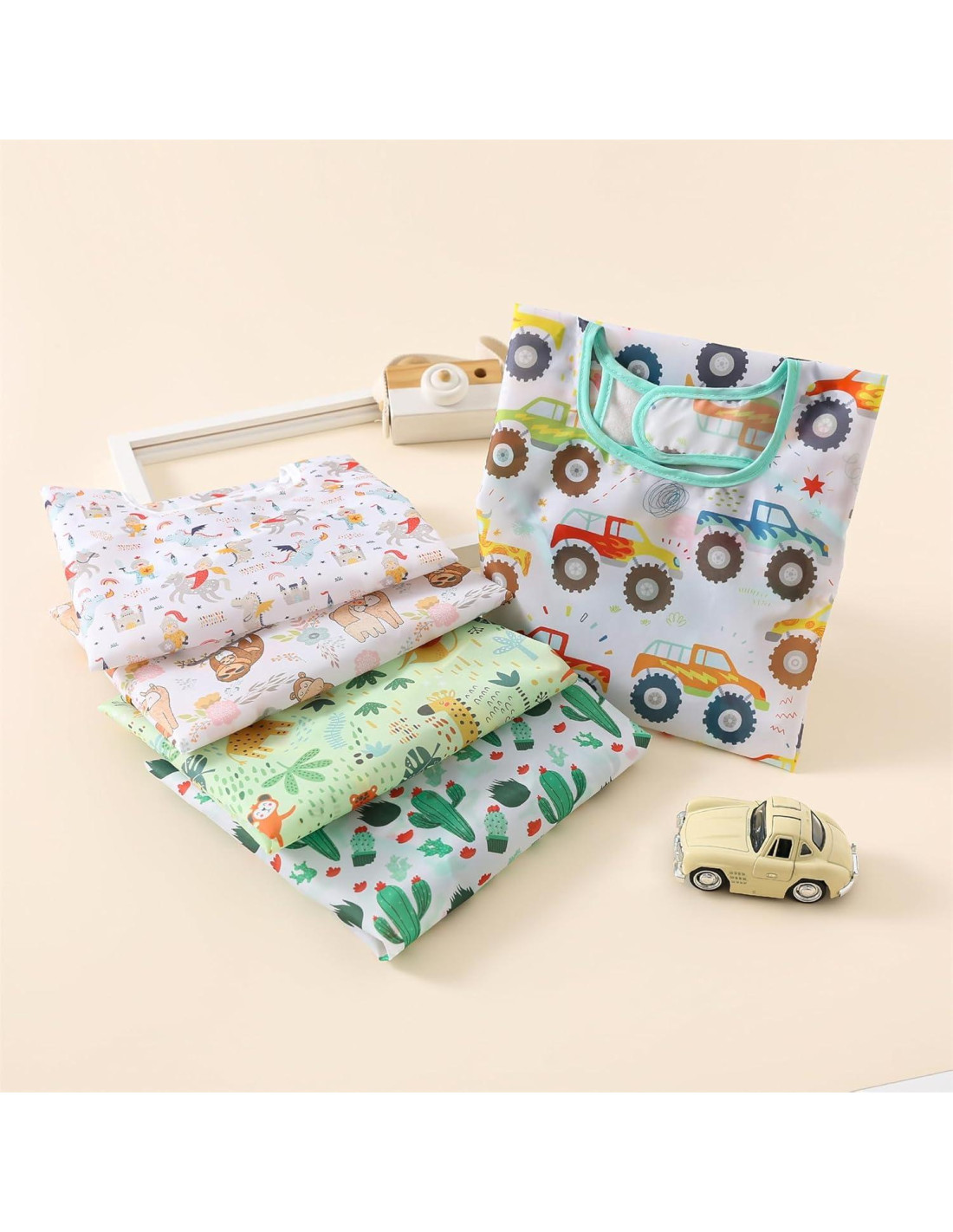 - Diseños Adorables: El conjunto incluye cinco diseños encantadores, cada uno con su propia impresión o patrón único. Desde animales juguetones hasta colores vibrantes, hay un babero para cada estilo y personalidad.