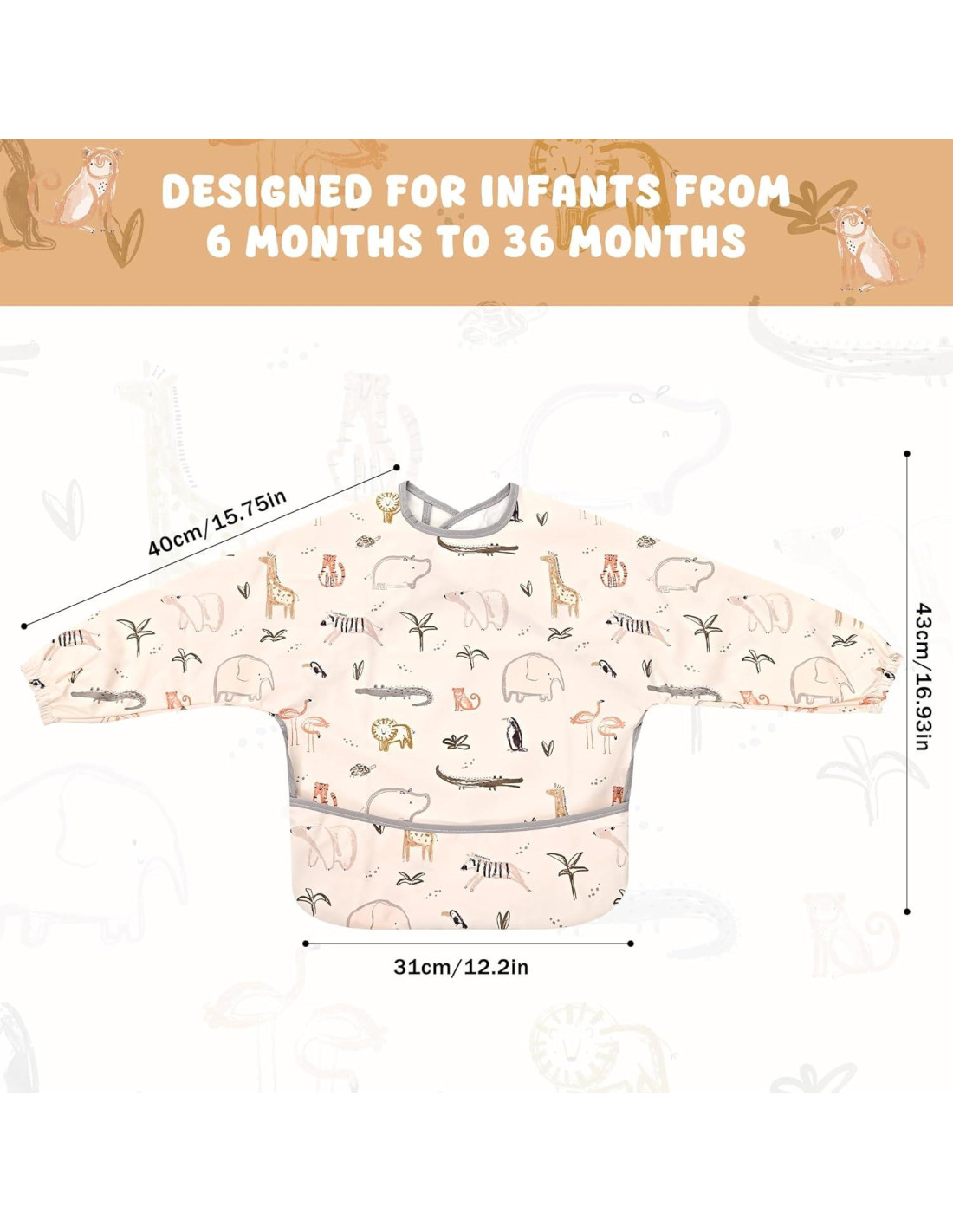 - Protección integral con mangas: Esta bata de alimentación con mangas largas y velcro ajustable proporciona protección integral durante las comidas, con puños elásticos que se ajustan perfectamente para asegurar que la comida o los líquidos no fluyan de los puños a las mangas, manteniendo la ropa limpia.