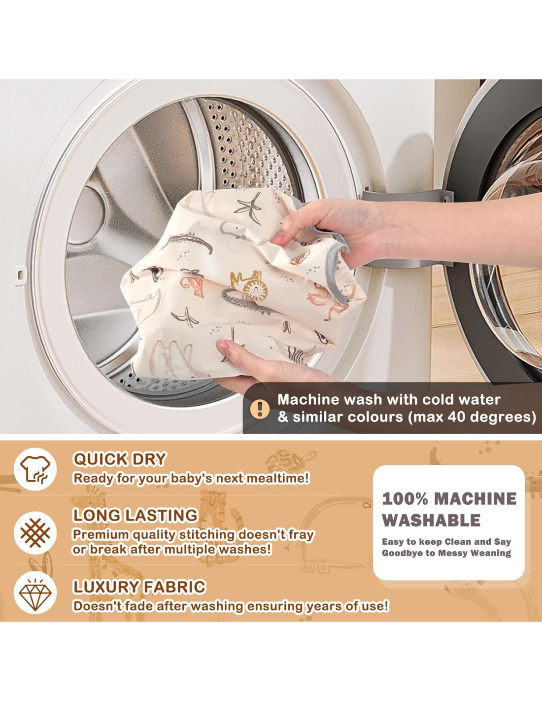 - Limpieza rápida y secado rápido: Con este babero lavable a máquina, el tiempo de limpieza es más corto. Limpia después de las comidas o lava a máquina a hasta 40 C para mantener la forma. Por lo tanto, puedes usarlo repetidamente. La tela de secado rápido asegura que esté listo para la próxima comida, ahorrando tiempo valioso y facilitando la limpieza. Para extender la vida útil, el lavado a mano con agua fría es la mejor opción.