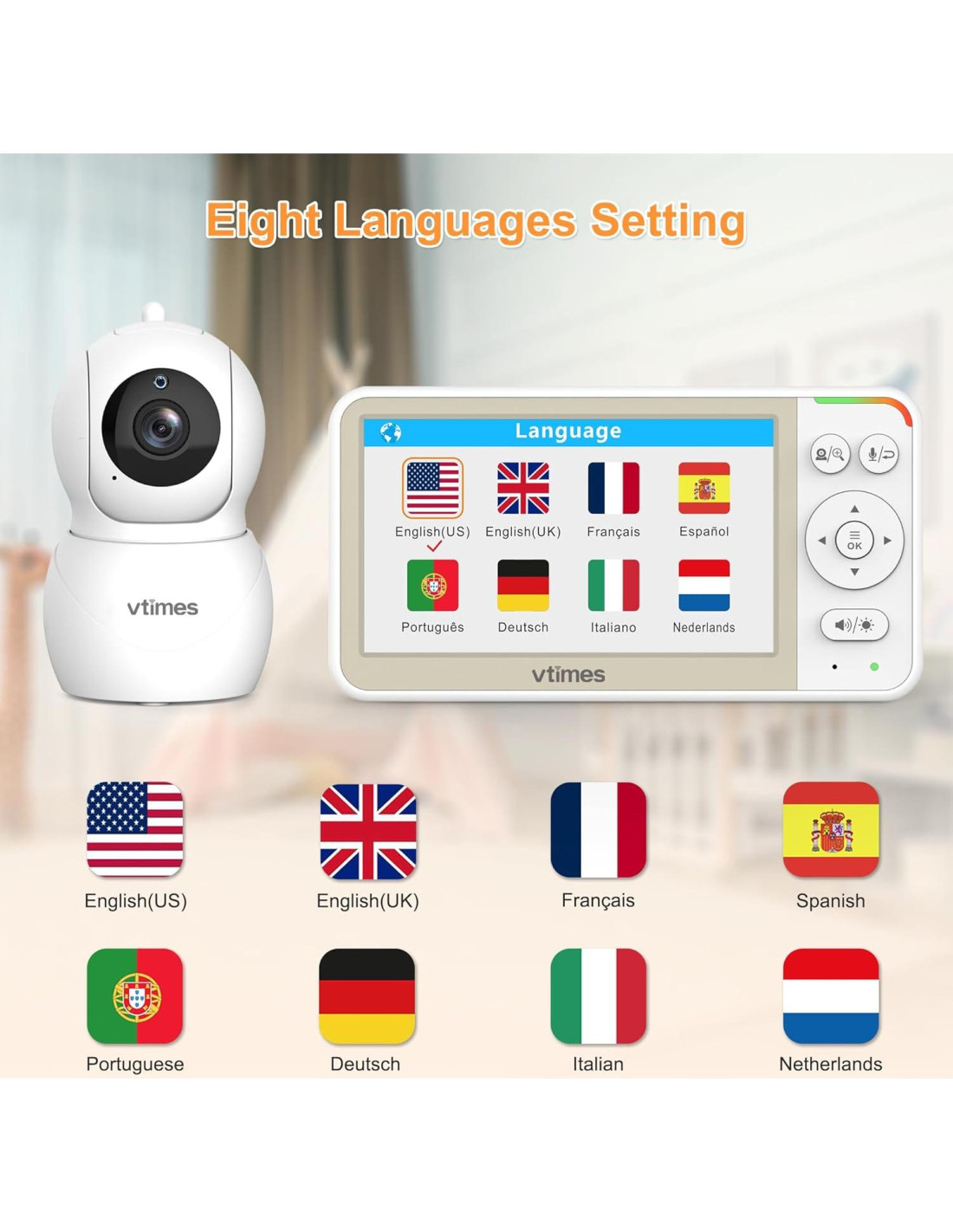 Este es un monitor de bebé completamente funcional con cámara y audio. Protegiendo la privacidad, equipado con una pantalla grande de cinco pulgadas, panorámica remota, visión nocturna automática, monitoreo de temperatura, reloj despertador, nana y modo ECO. Que puede proporcionar una protección integral para tus pequeños. Este monitor de bebé con cámara cuenta con una gran pantalla de 5" (12.7 cm), que te permite ver a tu hijo con mucha claridad. La pantalla IPS también asegura una imagen clara, suave y realista que reduce en gran medida la irritación ocular. Este monitor de video para bebés tiene una capacidad de batería de 4000mAh. Cuando está completamente cargado, mantener una batería de un día completo es suficiente para proteger a tu bebé día y noche. También es un monitor de bebé sin wifi, lo que puede proteger tu privacidad, seguro y sonoro. Nuestro lema es: VTimes es una empresa especializada en la producción de monitores de cámaras para bebés con una historia de más de 20 años. Poseemos una fábrica que integra diseño, investigación y desarrollo, y producción. Que es para proporcionar mejores monitores de bebé y servicio. Este monitor de bebé de 5 pulgadas. El modo ECO se activa automáticamente cuando tu bebé se duerme, conservando energía. La batería es de 4000 mAh, que es suficiente para soportar todo el día y toda la noche. brindando más conveniencia. Monitor de bebé VT31 Monitor de bebé VT302 Monitor de bebé VT506 Monitor de bebé VT507 Monitor de bebé VT601