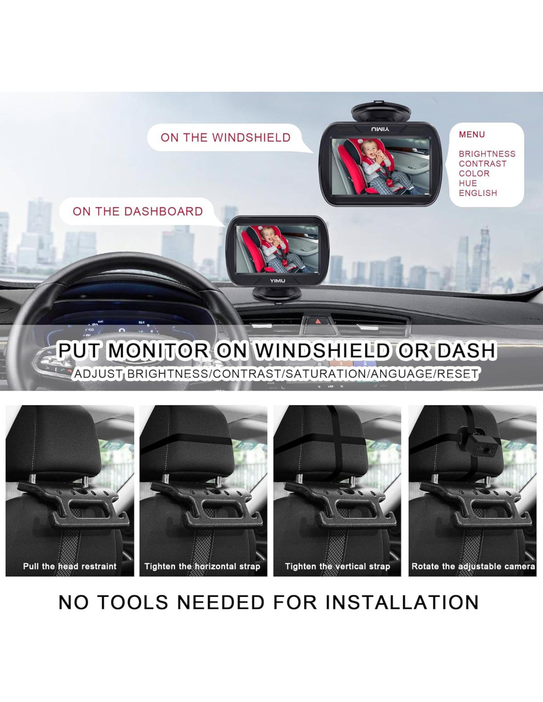- Garantía de 2 años: La cámara para bebé en el automóvil YIMU ofrece ventajas de calidad y precio en comparación con otras cámaras de espejo retrovisor de asiento de automóvil en el mercado. Si no estás seguro de cómo instalarlo, puedes enlazar a un video de YouTube para obtener orientación. Si encuentras algún problema con la cámara retrovisora del vehículo, no dudes en contactarnos en cualquier momento, y te ayudaremos a resolver los problemas con el monitor para bebé montado en el automóvil con cámara.