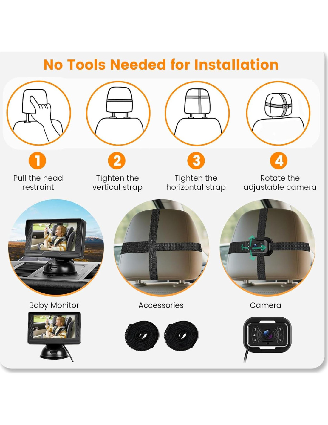 - [Vista en Tiempo Real de Tu Bebé Mientras Conduces] Siempre mantén tus ojos en tu pequeño con este monitor de coche para bebés. Ofrece una transmisión de video en vivo desde el asiento trasero, brindándote tranquilidad sin tener que girar.