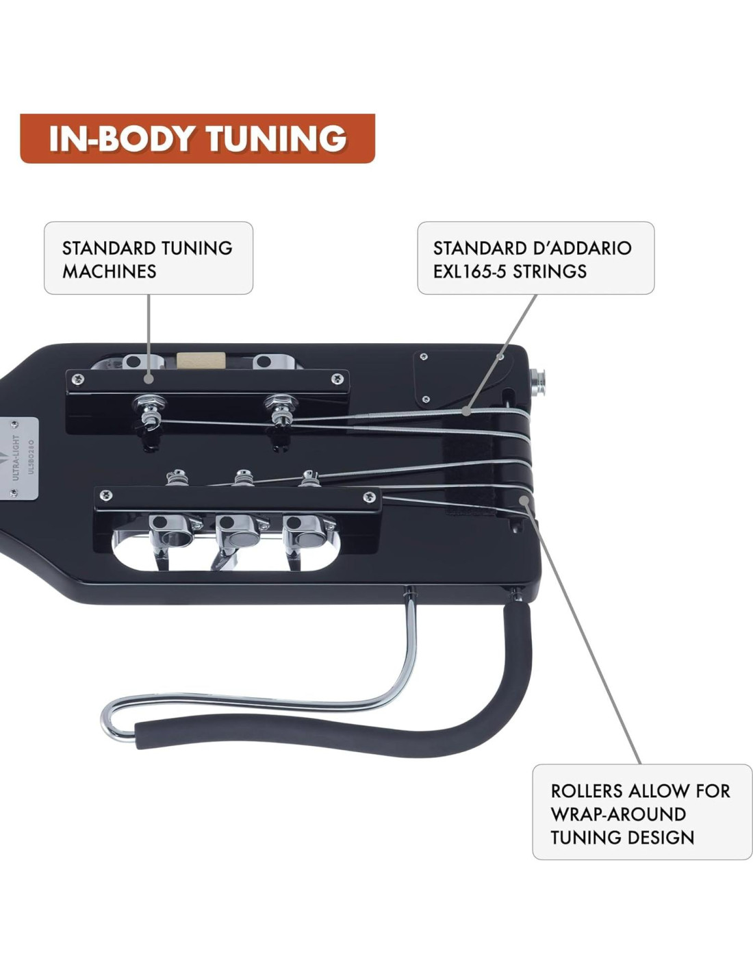 ¡De vuelta por demanda popular, el Bajo Ultra-Ligero de 5 Cuerdas! Este bajo de viaje mega compacto de 5 cuerdas pesa solo 3 lbs (1,36 kg), mide solo 33 3/4 pulgadas (85,73 cm) de largo y cuenta con un micrófono piezoeléctrico acústico para que puedas tocar o grabar siempre que el camino te lleve. Reposabrazos removible y funda personalizada incluidos.