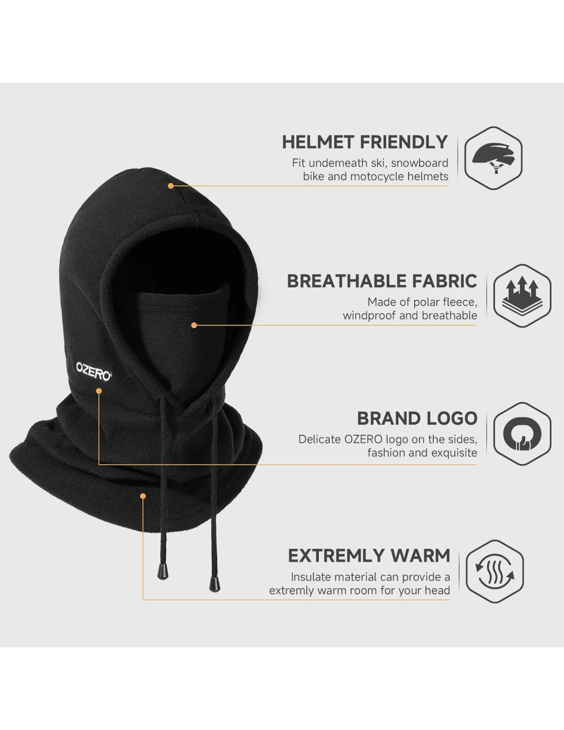 - Mantente Cálido y Cómodo - La capucha térmica OZERO balaclava puede proporcionarte un calor y comodidad inigualables. Suave y transpirable, mantiene tu cabeza, cuello, oídos y cara cálidos y cómodos durante el frío invierno.