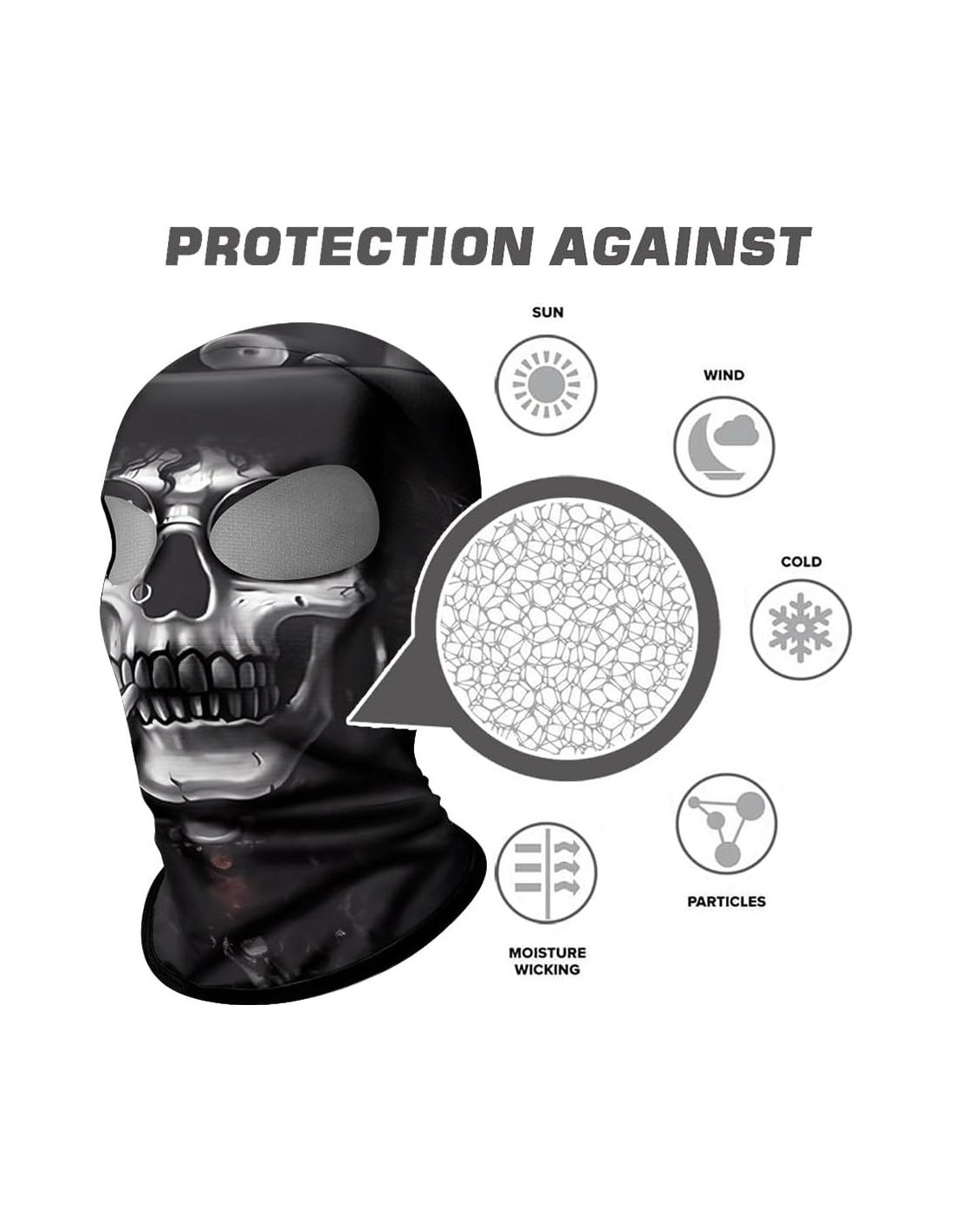 - Perfecto para usar debajo de un casco de motocicleta y para ocasiones especiales como Carnavales, Halloween, Fiestas y Festivales. Ideal para entusiastas de las calaveras.