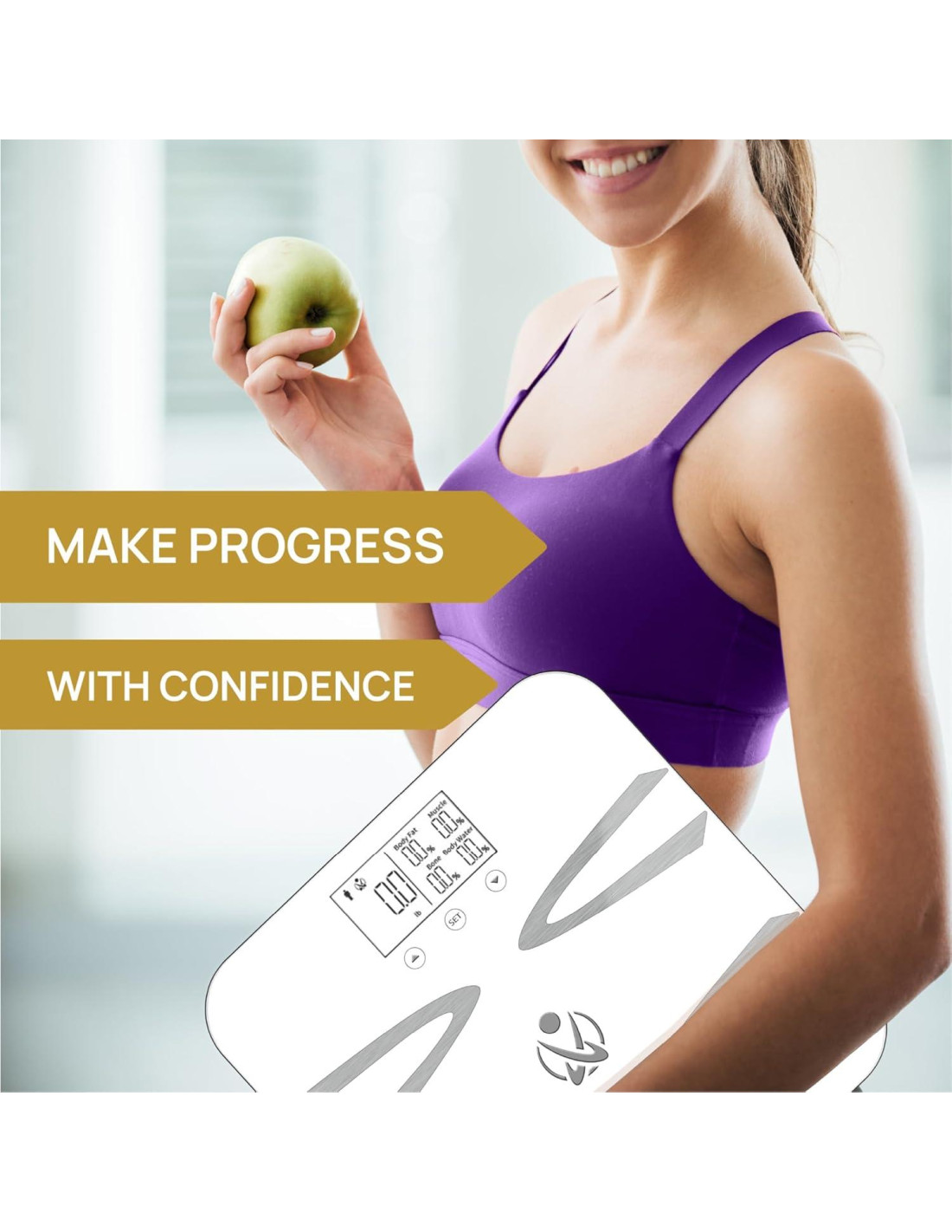 - ALCANZA TUS OBJETIVOS DE FITNESS MÁS RÁPIDO: Monitorea tus valores de composición corporal como porcentaje de grasa corporal, grasa visceral, agua corporal, porcentaje de masa muscular, hueso, índice de masa corporal IMC, tasa metabólica basal (TMB) e incluso edad metabólica. Esta información te permitirá rastrear tu progreso con precisión y alcanzar tus objetivos de fitness más rápido.