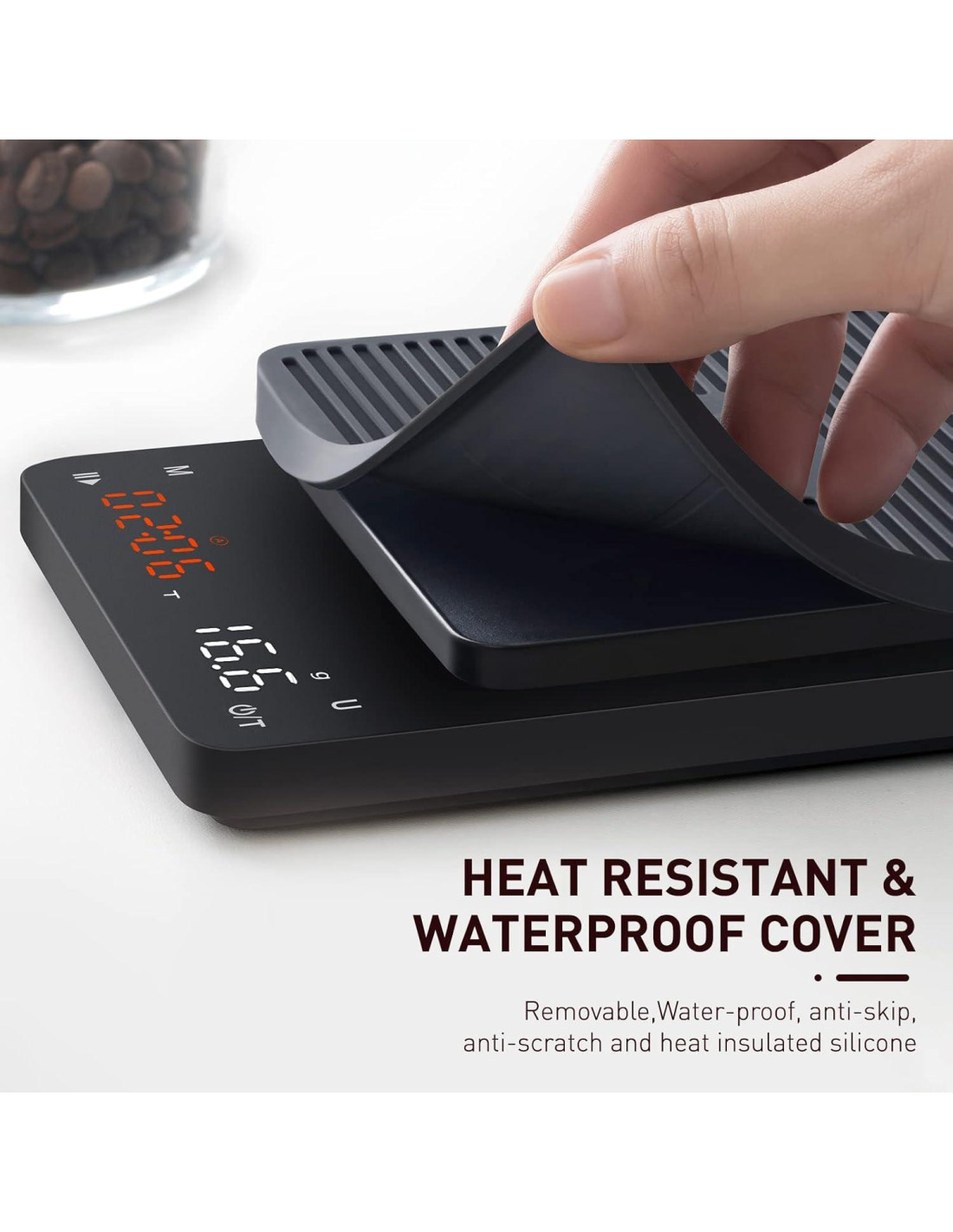 - NOTA: Si se usa para espresso, por favor mide tu máquina de espresso para asegurar que la balanza quepa dentro