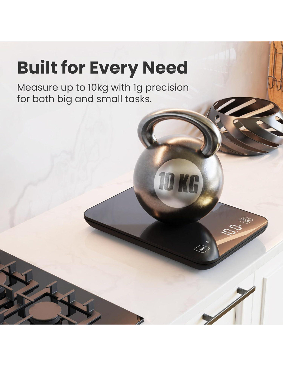 - Medición Precisa Con capacidad de 10kg/22lb y medidas precisas de alimentos y paquetes de 0.05oz (1.42g), esta báscula de peso para alimentos es la mejor opción para tus aventuras culinarias. Nuestra báscula de cocina es perfecta para panaderos, dietistas y entusiastas del café.