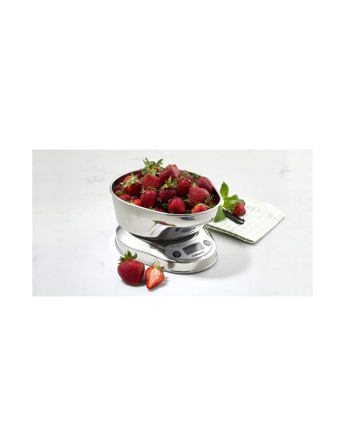 La balanza de cocina digital Cuisinart proporciona una forma simple y eficiente de pesar artículos alimenticios comunes. Es fácil controlar las porciones y hornear con mayor consistencia con las grandes pantallas digitales fáciles de leer y los botones de estilo de panel táctil fáciles de limpiar. El estilo característico en negro y acero inoxidable de la balanza coincide con el diseño de la familia de productos Cuisinart y se integra perfectamente en cualquier cocina contemporánea. El diseño elegante y las pequeñas dimensiones y perfil delgado son ideales para exhibir la balanza en la encimera o almacenar en armarios o estantes. Características: Incluye tazón de medición de acero inoxidable removible/cubierta|Plataforma de pesaje de vidrio templado duradera|Gran pantalla LCD iluminada|Botones de panel táctil y tazón apto para lavavajillas para una fácil limpieza|Capacidad de peso: 4.99 kg (11 lbs)|Baterías AA incluidas