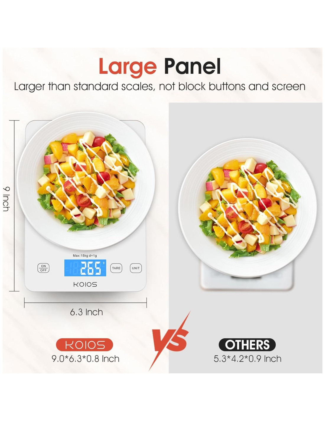- [Vidrio Templado Impermeable & Fácil de Almacenar] Hecha de vidrio templado impermeable, la balanza de peso K7H puede proteger contra residuos de alimentos y daños por agua. Tamaño adecuado de 9.0 x 6.3 pulgadas supera a las balanzas pequeñas y baratas ya que tiene suficiente plataforma para pesar varios ingredientes. Diseño de gancho oculto para fácil almacenamiento.