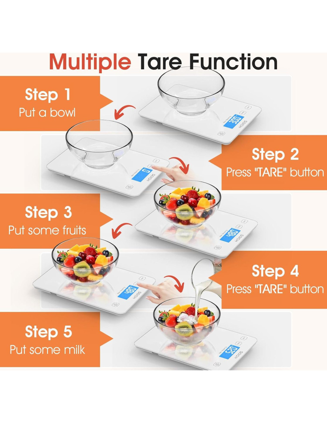 - [Función Tare & Alarma Inteligente] La función tare resta el peso del plato o recipiente, fácil de obtener pesos precisos de ingredientes. Adoptado un chip avanzado, la balanza de alimentos para cocina tiene indicación de batería baja y sobrecarga para asegurar la precisión de la medición.