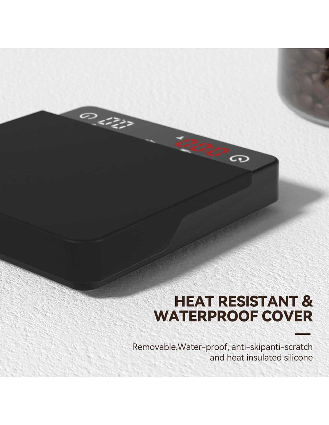 - [DISEÑO MINIMALISTA Y LIMPIO] Esta báscula digital de café es fácil de almacenar o transportar. Además, su elegante apariencia negra mate es perfecta para cualquier cocina.
