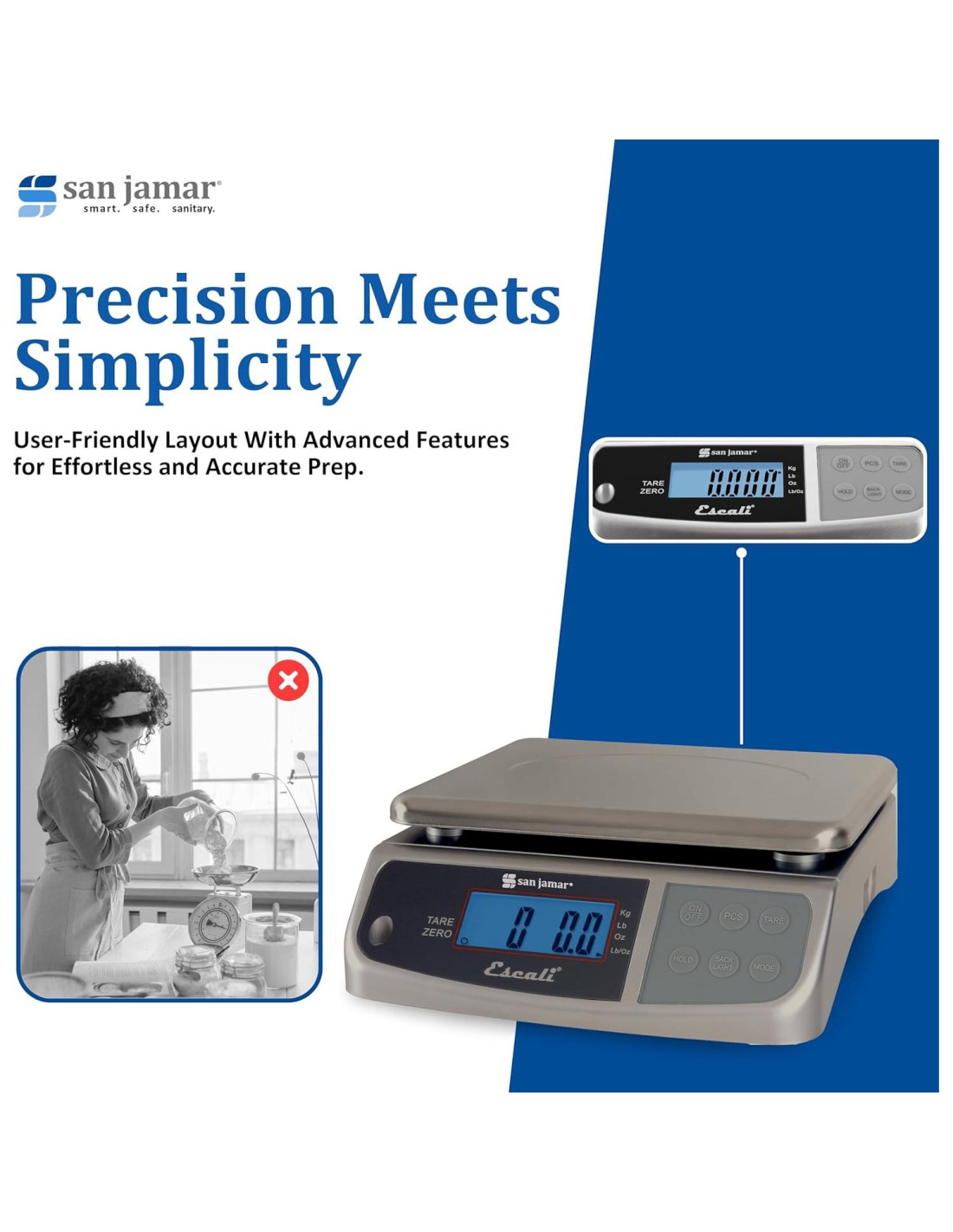 Eleva tu precisión culinaria con la Balanza Digital San Jamar Escali Promzr M-Series, el secreto de tu cocina para una preparación de alimentos precisa y eficiente. Esta elegante balanza digital de color plata es el compañero ideal tanto para cocinas como para restaurantes, ofreciendo una variedad de características para optimizar tus tareas culinarias. Di adiós a las mediciones complicadas. Con la M-Series Promzr, puedes restablecer rápidamente la balanza a cero, simplificando tu preparación de alimentos. Esta función te permite medir múltiples elementos en un solo recipiente con facilidad, optimizando tu flujo de trabajo. Ya sea que estés en movimiento o en la cocina, esta balanza te cubre. Puede ser alimentada por 4 baterías C (incluidas) para portabilidad o con un adaptador de 9V (se vende por separado) para tareas ligeras y de mediana carga. La adaptabilidad está al alcance de tu mano. El marco de metal y los botones sellados están diseñados para una fácil limpieza. Un simple paño húmedo es todo lo que necesitas para mantener tu balanza en óptimas condiciones. Además, la placa de medición de acero inoxidable es removible, asegurando una limpieza conveniente y completa después de tus obras maestras culinarias. En cocinas con espacio limitado, cada pulgada cuenta. La M-Series Promzr tiene una altura total de solo 12.07 centímetros, lo que la convierte en la opción perfecta para espacios debajo de gabinetes o en otras áreas confinadas. Proporciona la flexibilidad que necesitas en tu espacio de trabajo.
