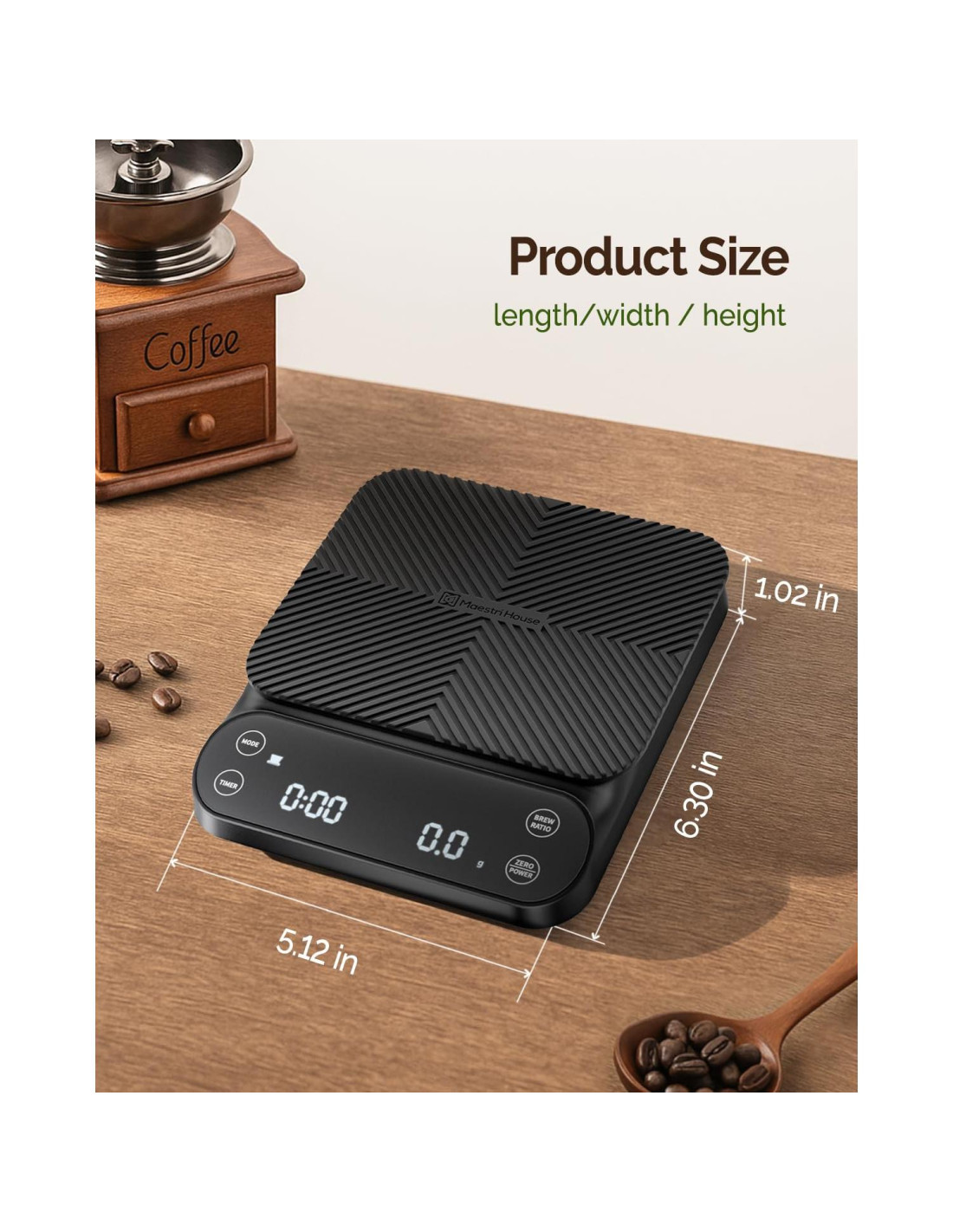 - [Preparación Silenciosa, Mañanas Tranquilas] Como otras balanzas de café Maestri House, este modelo pour-over cuenta con una función de silencio incorporada para eliminar los sonidos de beep durante la operación. Simplemente presiona y mantén presionados los botones TIMER y ZERO durante 2 segundos para activar el Modo Silencioso; perfecto para mañanas tempranas o espacios tranquilos donde cada sonido importa