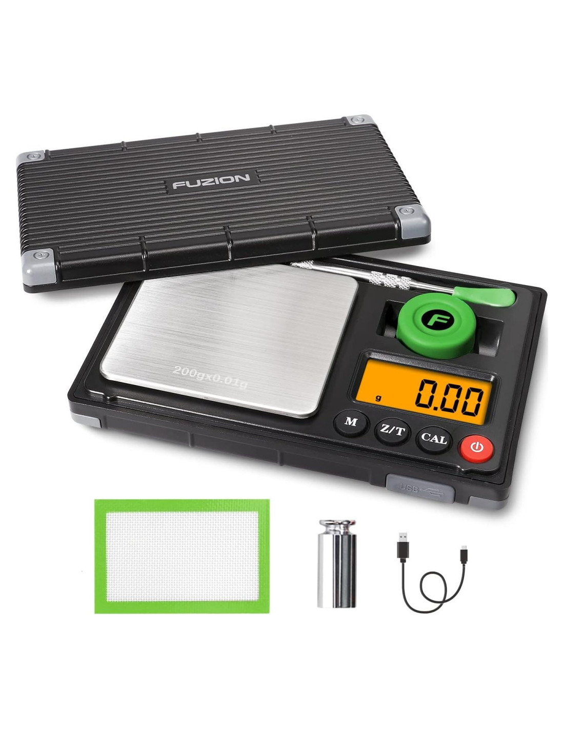 El sensor de pesaje de alta precisión te proporciona resultados precisos de 0.01g a 200g. Puedes calibrar rápidamente presionando el botón 'cal'. ¡Di adiós a las operaciones tediosas! Con un diseño portátil, tiene un tamaño similar al de un teléfono, fácil para usar en casa o viajar. La bandeja de pesaje hecha de acero inoxidable de calidad es fácil de limpiar con un paño o pañuelos. Estilo y Función: Diseño de base metálica fuerte y duradera con un acabado minimalista y elegante. 1*Báscula electrónica Fuzion 1*Peso de 50g 1*Caja de silicona de 3ML 1*Alfombrilla de silicona 1*Herramienta de tallado de cera de acero inoxidable 1*Funda de viaje 1*Manual de instrucciones 2*Batería AAA