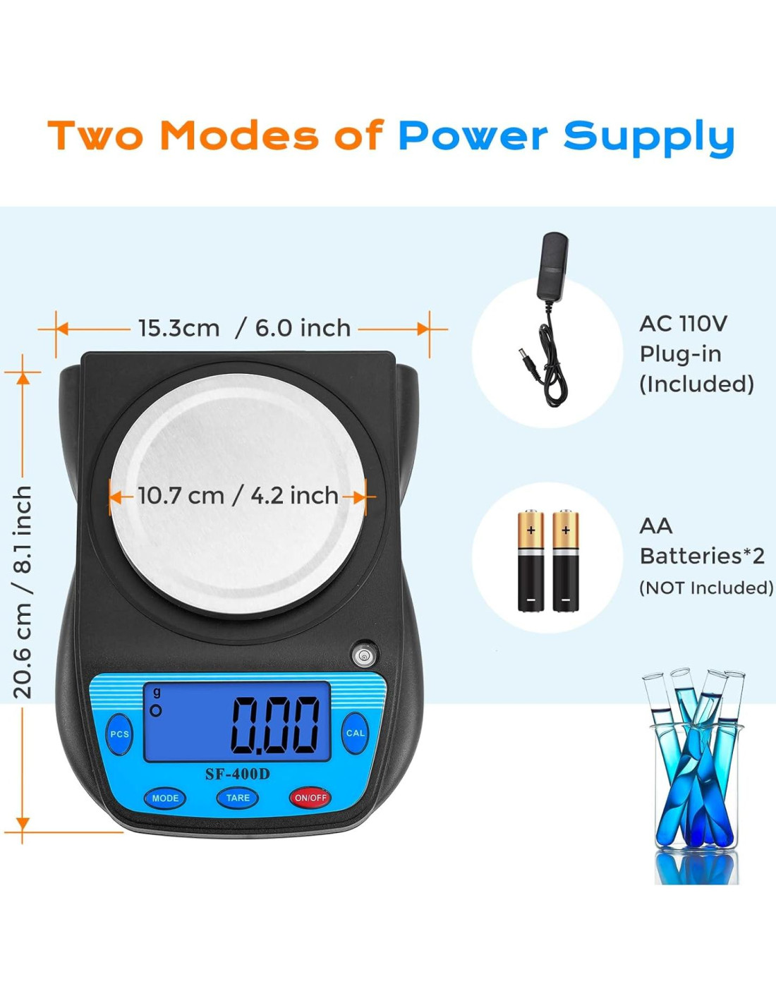 - PRECISO, RESPUESTA RÁPIDA-La báscula de laboratorio está equipada con un sensor de celda de carga de alta precisión, lo que le permite pesar de manera rápida y precisa con un amplio rango de 500g.