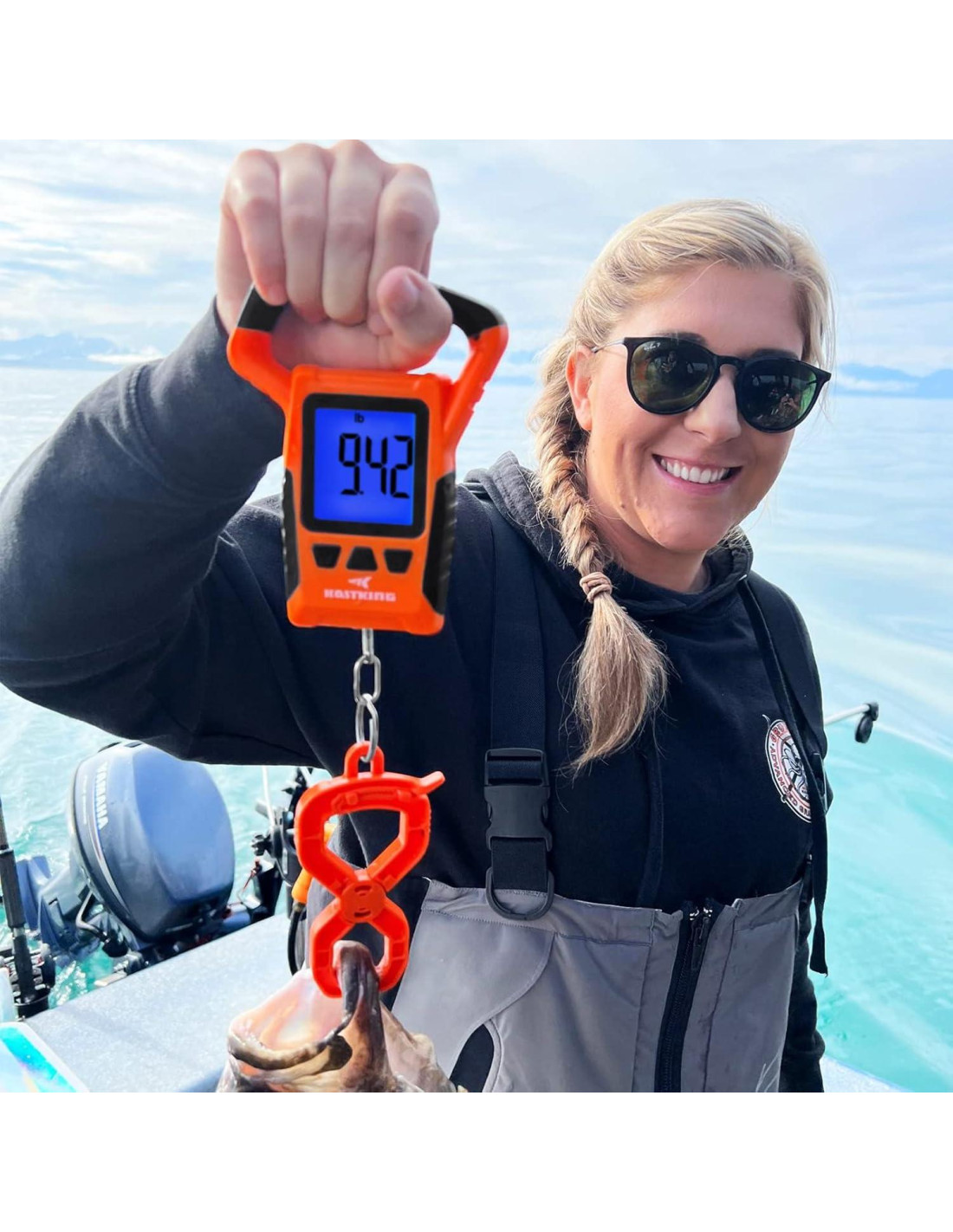 - Construcción Ergonómica y Duradera - El mango de ABS duradero es fuerte, ligero y cuenta con lados antideslizantes de TPR que te dan un agarre firme al pesar tu captura. La amplia apertura del mango facilita su sujeción para cualquier tamaño de mano, con o sin guantes, y la balanza pesa hasta 110lb (49.9kg). Incluimos un agarre de labio y un gancho de acero inoxidable para pesar tu captura, y las baterías están incluidas.